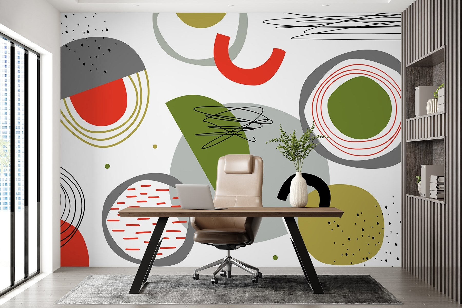 Rozjaśnij każde pomieszczenie dzięki tej żywej fototapecie ściennej, prawdziwej celebracji kolorów i kształtów! Wyobraź sobie, że wchodzisz do swojej przestrzeni i czujesz natychmiastowy zastrzyk energii – jak ciepłą filiżankę kawy w senny poranek. Zabawna mieszanka odważnych czerwieni, uspokajających zieleni i dziwacznych linii zachęca do kreatywności i zabawy. Wyobraź sobie, że przyjmujesz przyjaciół, a każda kropka i krzywa wywołuje rozmowę i śmiech. To nie tylko wystrój, to nastrój! Idealny do salonu, biura lub wszędzie tam, gdzie przydałaby się odrobina osobowości. Przekształć swoje ściany w coś, co czuje, że żyje!