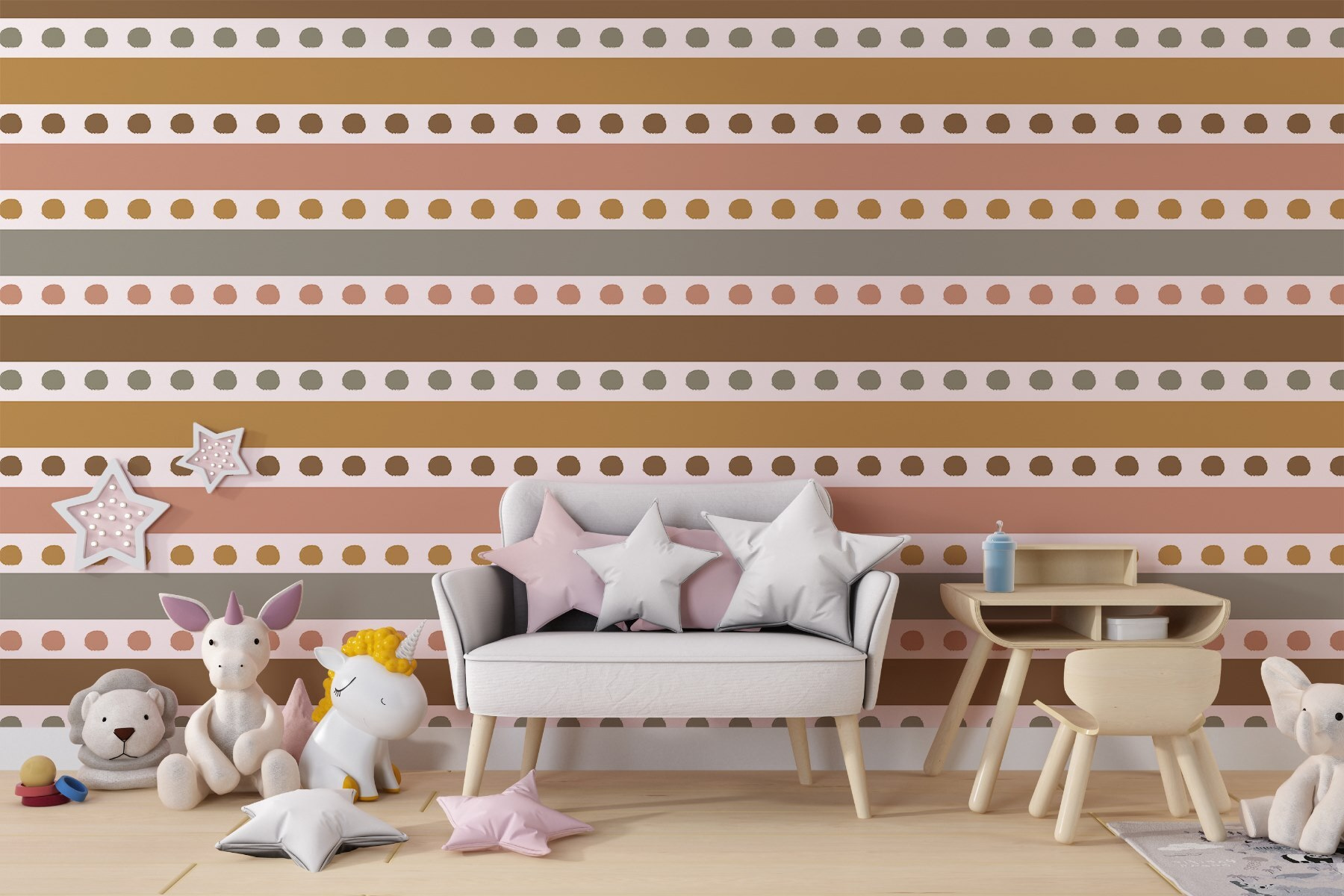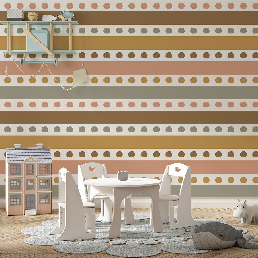 Rozjaśnij swoją przestrzeń dzięki fototapecie ściennej “Wzór kolorowych kropek”! Ten zabawny wzór przedstawia symfonię kropek w delikatnych, ziemistych odcieniach – wyobraź sobie przytulną, zachęcającą atmosferę idealną na relaksujące spotkania lub samotne odosobnienie z książką. Każdy pasek wprowadza lekki nastrój, przypominający piknik w słoneczny dzień. Wyobraź sobie kogoś, kto wchodzi, uśmiecha się na widok wesołych kropek i nagle czuje się zainspirowany do zorganizowania przyjęcia herbacianego – a może po prostu delektowania się kawałkiem ciasta na kanapie. To jak ciepły uścisk dla ścian, który bez wysiłku tchnie życie w każde pomieszczenie. Trudno będzie nie podziwiać tych kropek każdego dnia!