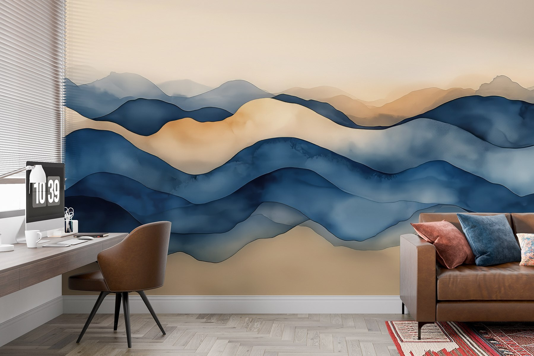 Zanurz się w spokojnej ucieczce z fototapetą ścienną “Niebieskie i brązowe fale”. Ta fototapeta tańczy z miękkimi, płynącymi falami w spokojnych błękitach i ciepłych opaleniznach, które szepczą relaks. Wyobraź sobie, że wchodzisz do pokoju i wita cię delikatna bryza oceanu – bez piasku w butach. Idealny do salonu lub przytulnego kącika, przekształca każdą przestrzeń w mini sanktuarium. Akwarelowy charakter dodaje artystycznego akcentu, który sprawia wrażenie prawie jak obraz na płótnie. To jak przeniesienie kawałka natury do wnętrza, przywołując spokojne wibracje za każdym razem, gdy na nią spojrzysz. Kto nie pokochałby codziennego przypomnienia, by się trochę wyluzować?