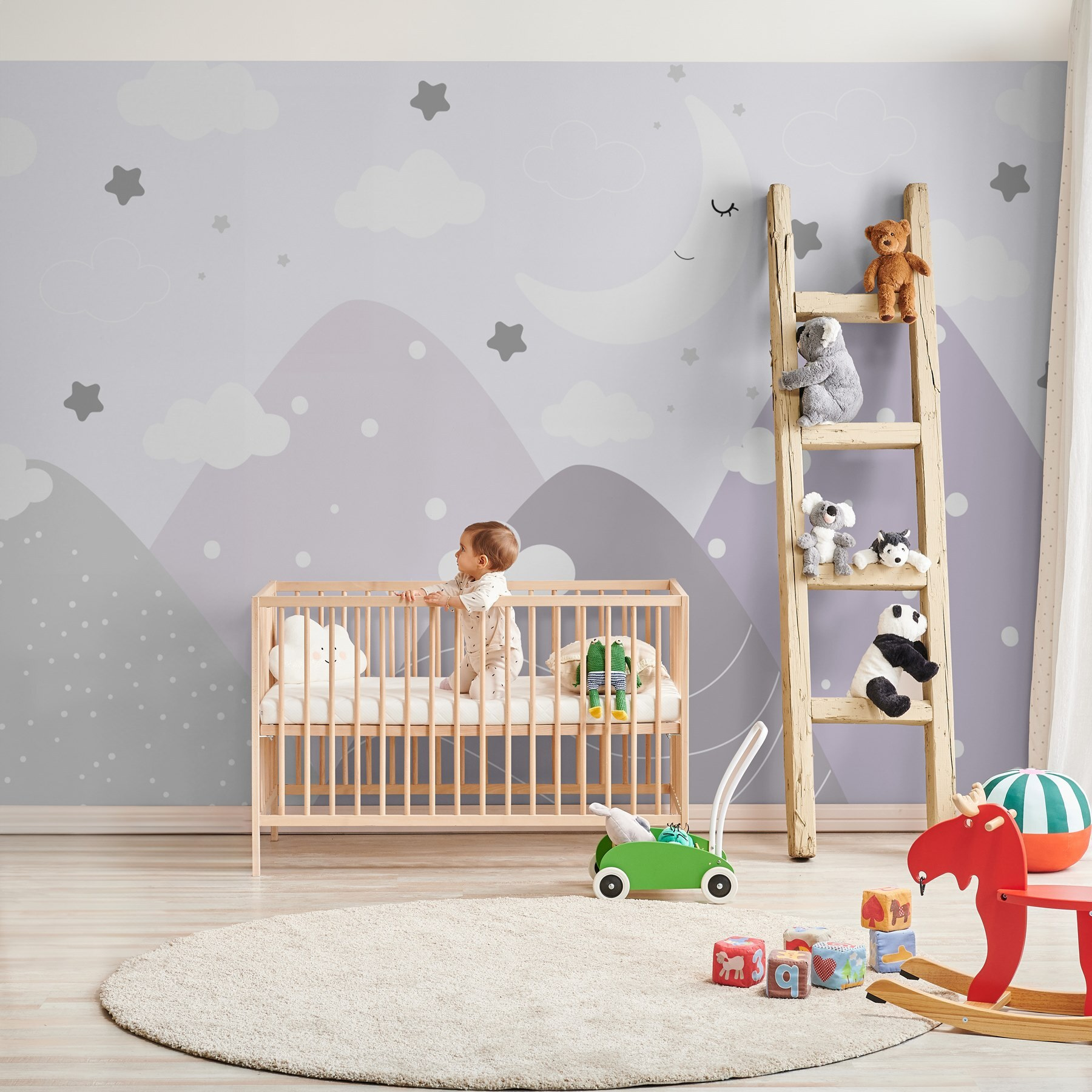 Odmień każdą przestrzeń dzięki tej marzycielskiej fototapecie z księżycem i chmurami na niebie. Idealna dla najmłodszych, tworzy kapryśną atmosferę, która jest przytulna, a jednocześnie zabawna. Wyobraź sobie pokój dziecka, w którym pora snu staje się przygodą, otoczony łagodnymi górami i migoczącymi gwiazdami. Delikatne kolory uspokajają, jednocześnie pobudzając wyobraźnię – idealne zarówno dla marzycieli, jak i obserwatorów gwiazd. Niezależnie od tego, czy jest to czas opowieści, czy drzemki, ta fototapeta otula pokój spokojnymi wibracjami, sprawiając, że każda chwila jest przytulna i wyjątkowa. Nie zdziw się, jeśli cała rodzina zacznie z niecierpliwością czekać na porę snu!