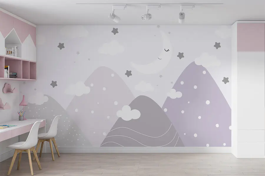 Odmień każdą przestrzeń dzięki tej marzycielskiej fototapecie z księżycem i chmurami na niebie. Idealna dla najmłodszych, tworzy kapryśną atmosferę, która jest przytulna, a jednocześnie zabawna. Wyobraź sobie pokój dziecka, w którym pora snu staje się przygodą, otoczony łagodnymi górami i migoczącymi gwiazdami. Delikatne kolory uspokajają, jednocześnie pobudzając wyobraźnię – idealne zarówno dla marzycieli, jak i obserwatorów gwiazd. Niezależnie od tego, czy jest to czas opowieści, czy drzemki, ta fototapeta otula pokój spokojnymi wibracjami, sprawiając, że każda chwila jest przytulna i wyjątkowa. Nie zdziw się, jeśli cała rodzina zacznie z niecierpliwością czekać na porę snu!