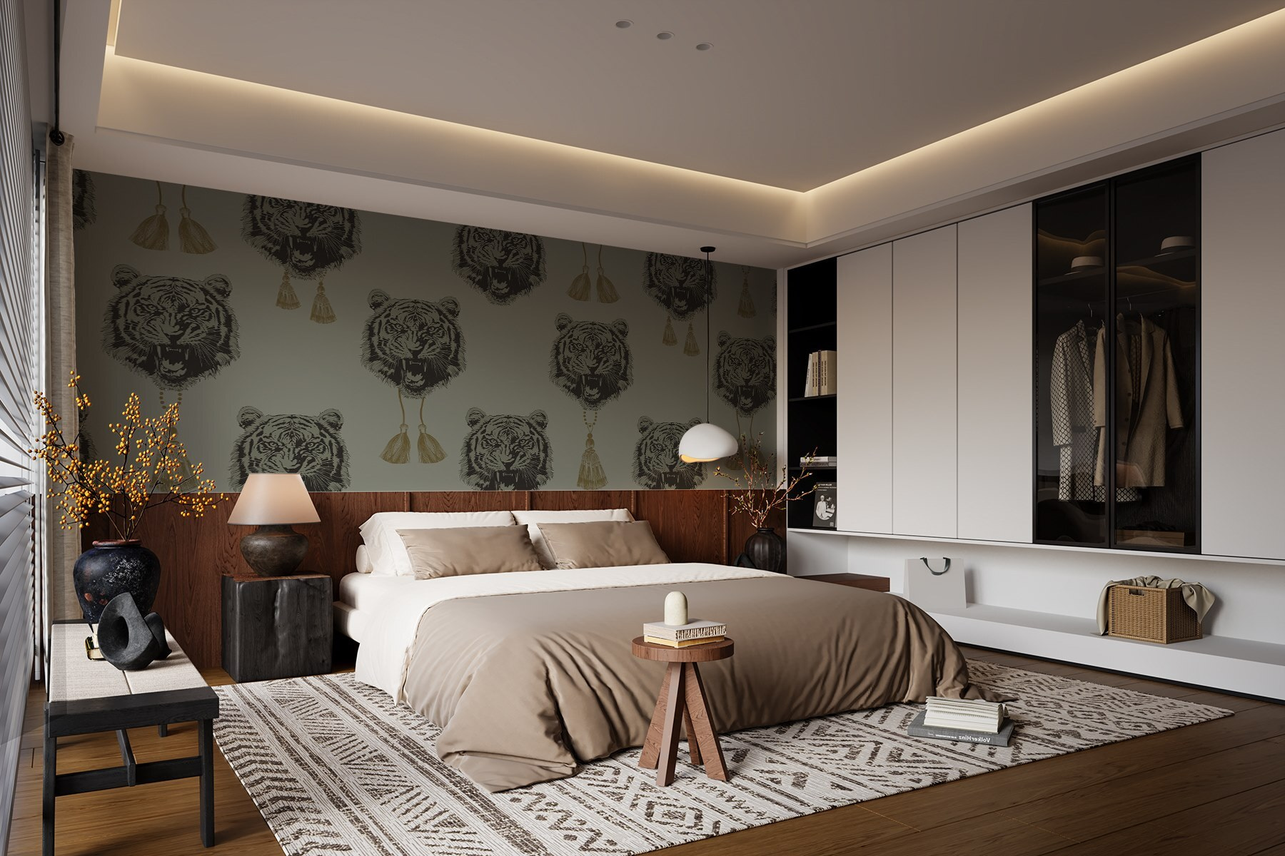 Przekształć swoją przestrzeń za pomocą tej uderzającej fototapety, przedstawiającej zadziorne tygrysie głowy ozdobione zabawnymi frędzlami. Wyobraź sobie, że wchodzisz do pokoju, w którym odważny kunszt łączy się z odrobiną kaprysu – to jak szalona impreza z grupą kotów z klasą. Bogate, ziemiste odcienie tworzą ciepłą atmosferę, podczas gdy te ryczące tygrysy wprowadzają odrobinę dramatyzmu do sceny. Idealny do stworzenia wyrazistego salonu lub dodania odrobiny przygody do przytulnego zakątka. Kto nie chciałby poczuć się nieco bardziej odważnie za każdym razem, gdy przechodzi obok? Przygotuj się na ryk stylu!