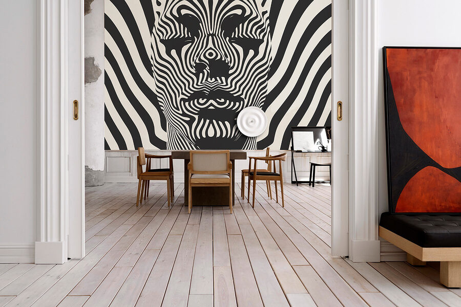 Przekształć każde pomieszczenie w miejsce do rozmów dzięki tej uderzającej czarno-białej fototapecie ściennej. To nie tylko wzór; to jak dziwaczny przyjaciel, który cicho obserwuje wszystko, ale zdecydowanie przyciąga wzrok. Hipnotyzujące linie wirują wokół subtelnie abstrakcyjnej twarzy, sprawiając, że każdy, kto na nią spojrzy, zatrzyma się – jak zauważenie chmury, która wygląda jak dinozaur.