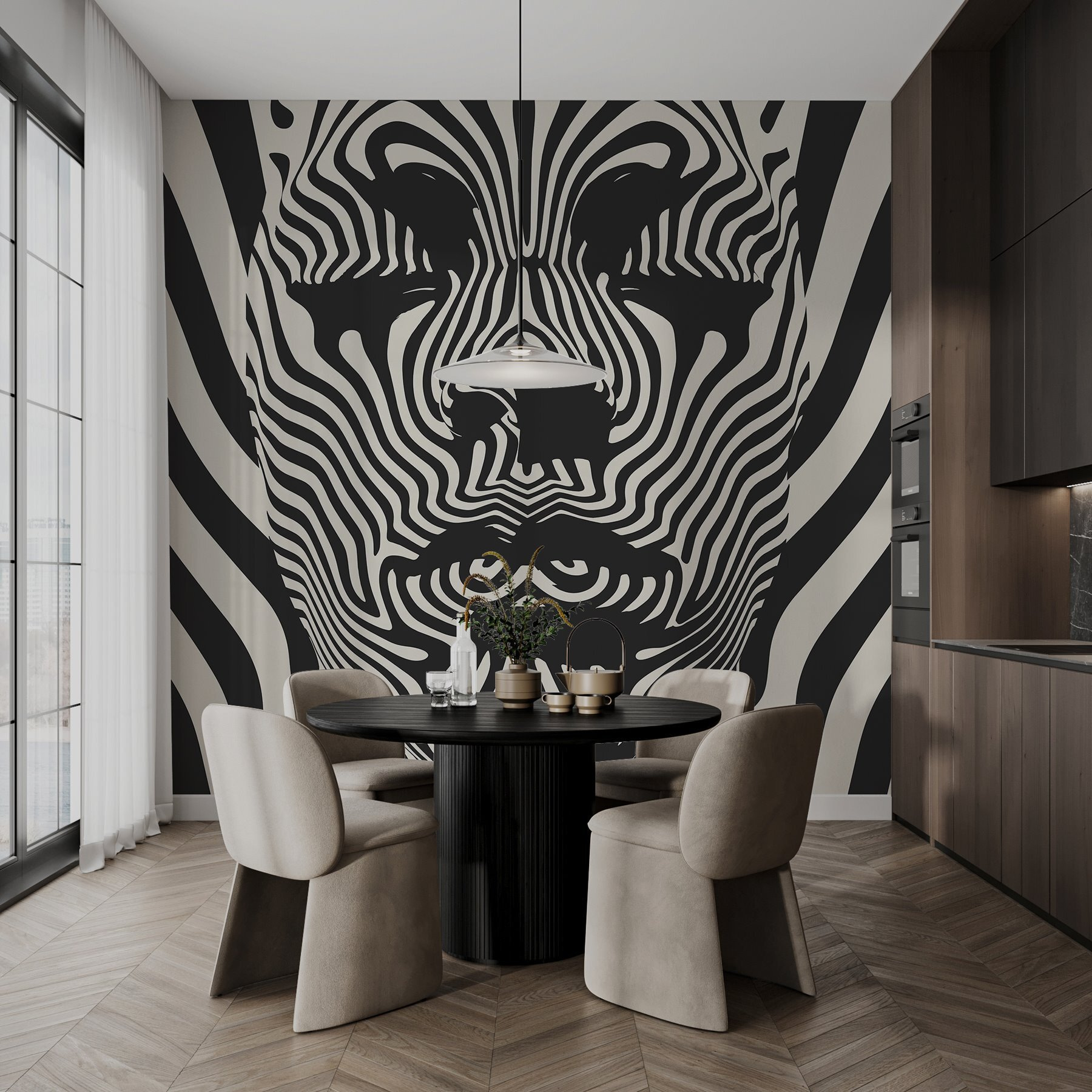 Przekształć każde pomieszczenie w miejsce do rozmów dzięki tej uderzającej czarno-białej fototapecie ściennej. To nie tylko wzór; to jak dziwaczny przyjaciel, który cicho obserwuje wszystko, ale zdecydowanie przyciąga wzrok. Hipnotyzujące linie wirują wokół subtelnie abstrakcyjnej twarzy, sprawiając, że każdy, kto na nią spojrzy, zatrzyma się – jak zauważenie chmury, która wygląda jak dinozaur.
