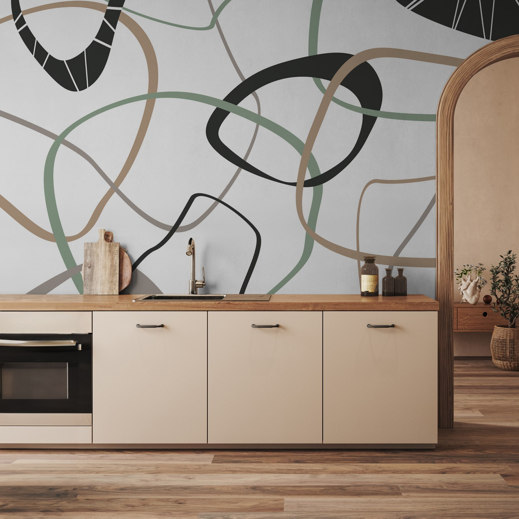 Przekształć każde pomieszczenie w elegancką ucieczkę dzięki tej fototapecie ściennej “Wzór linii i okręgów”. Wyobraź sobie, że wchodzisz do przestrzeni, która jest jednocześnie nowoczesna i przytulna. Gładkie linie i figlarne okręgi tańczą po ścianie, sprawiając, że wydaje się ona dziełem sztuki, a nie tylko tłem. Wyobraź sobie, że trzymasz filiżankę kawy, podziwiając, jak ziemiste odcienie otulają pomieszczenie ciepłem. To jak delikatne przypomnienie, że życie nie zawsze musi być takie poważne. Idealny do pobudzenia rozmowy lub po prostu poczucia inspiracji na co dzień! Odrobina kaprysu, szczypta spokoju – czego tu nie kochać?