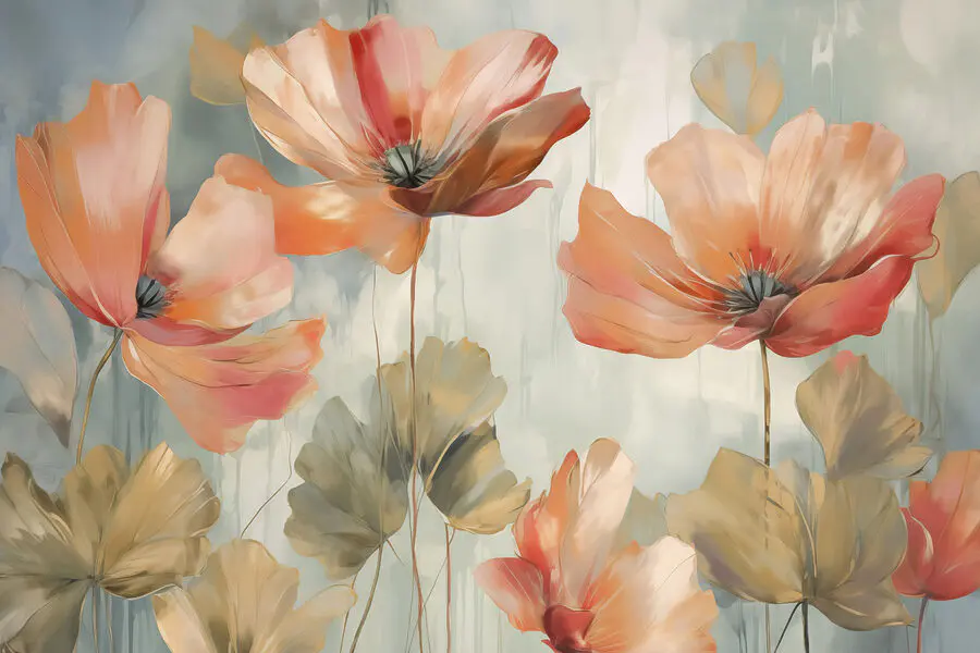 Odmień swoją przestrzeń dzięki tej oszałamiającej fototapecie ściennej z żywymi kwiatami, które wydają się tańczyć po ścianie. Wyobraź sobie, że wchodzisz do pokoju i od razu czujesz się lżej, jakbyś właśnie spacerował po kwitnącym ogrodzie. Miękkie odcienie brzoskwini i delikatnej zieleni tworzą uspokajającą atmosferę – idealne tło dla przytulnych rozmów lub spokojnych poranków przy kawie. To tak, jakby mieć naturę w swoim domu, bez pyłków! Niezależnie od tego, czy chcesz dodać trochę uroku do salonu, czy stworzyć spokojny kącik w sypialni, ta fototapeta wnosi ciepło, urok i odrobinę radości. Kto nie chciałby obudzić się w otoczeniu takiego piękna?