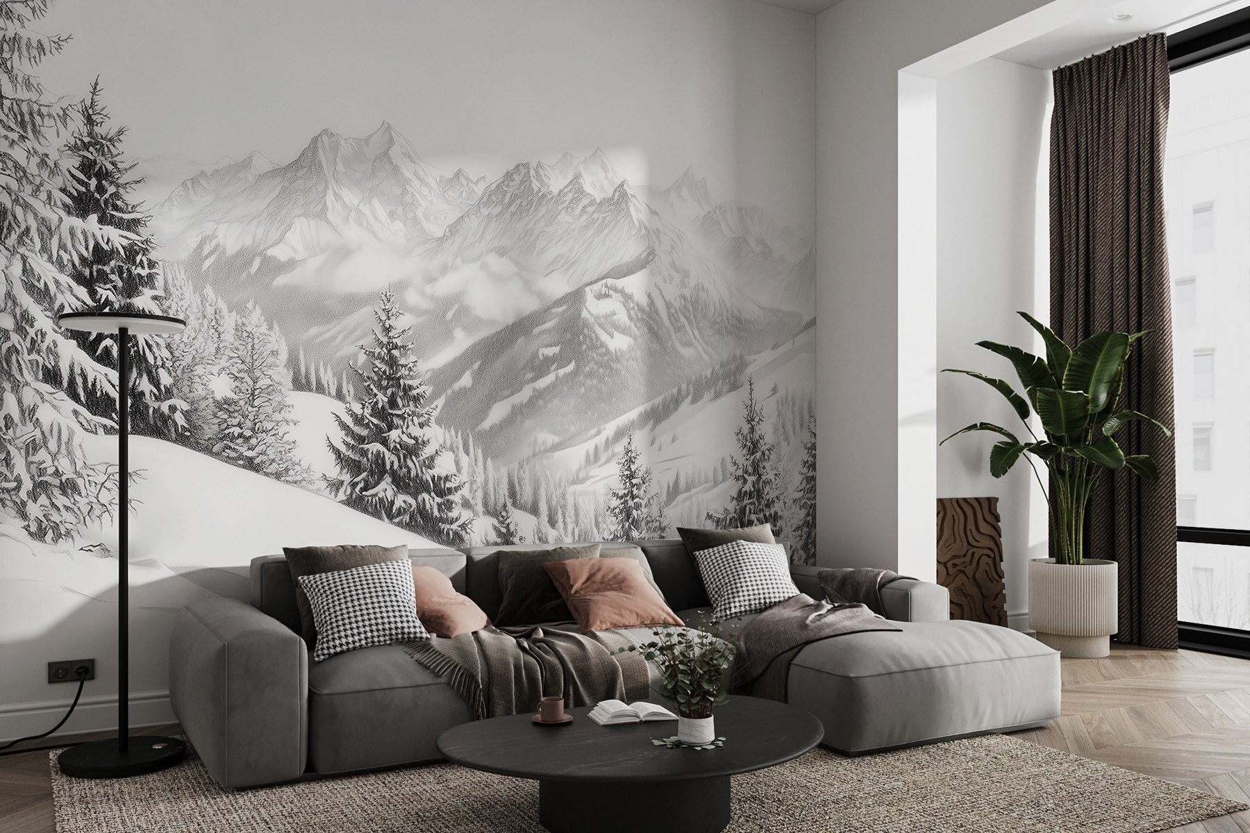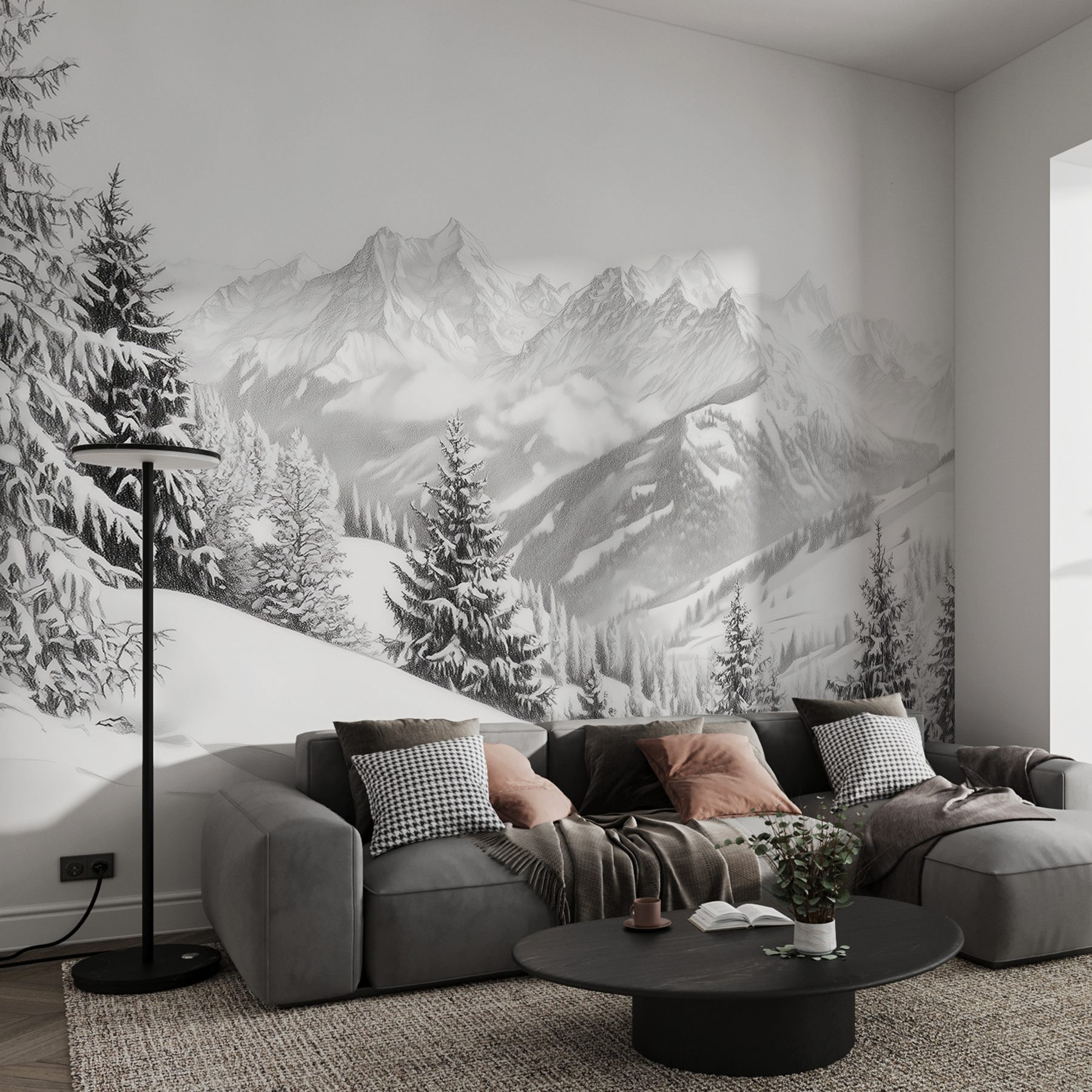 Przekształć dowolny pokój w spokojną zimową ucieczkę dzięki tej oszałamiającej fototapecie przedstawiającej ośnieżone góry i majestatyczne drzewa. Wyobraź sobie siebie przytulającego się z gorącym napojem, wpatrującego się w zapierający dech w piersiach krajobraz, który wydaje się być na wyciągnięcie ręki. Spokojna biel i delikatne szarości przywołują spokój, który otula jak ciepły koc – idealny na chłodne noce. Dodaj odrobinę dzikiej przyrody do swoich ścian i pozwól swojej przestrzeni oddychać świeżym górskim powietrzem. Idealna zarówno dla miłośników przyrody, jak i marzycieli, ta fototapeta zachęca do spokojnych myśli i poczucia przygody, nawet z kanapy.