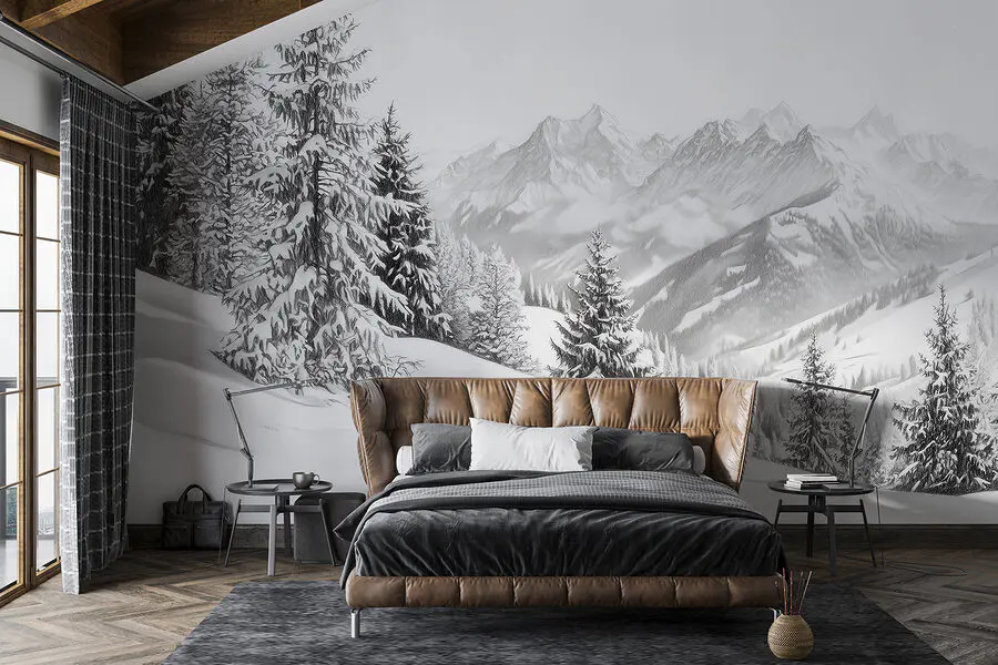 Przekształć dowolny pokój w spokojną zimową ucieczkę dzięki tej oszałamiającej fototapecie przedstawiającej ośnieżone góry i majestatyczne drzewa. Wyobraź sobie siebie przytulającego się z gorącym napojem, wpatrującego się w zapierający dech w piersiach krajobraz, który wydaje się być na wyciągnięcie ręki. Spokojna biel i delikatne szarości przywołują spokój, który otula jak ciepły koc – idealny na chłodne noce. Dodaj odrobinę dzikiej przyrody do swoich ścian i pozwól swojej przestrzeni oddychać świeżym górskim powietrzem. Idealna zarówno dla miłośników przyrody, jak i marzycieli, ta fototapeta zachęca do spokojnych myśli i poczucia przygody, nawet z kanapy.