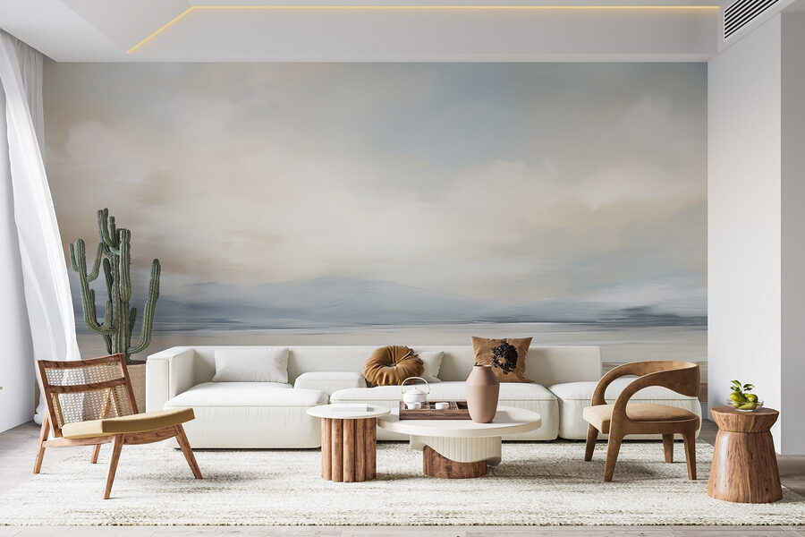 Odmień swoją przestrzeń dzięki tej pogodnej fototapecie ściennej “Krajobraz z akwenem wodnym i chmurami”. Wyobraź sobie, że wchodzisz do pokoju, w którym uspokajające kolory szepczą spokój, a miękkie chmury dryfują nad głową. Ta fototapeta wciągnie cię w senną nadmorską ucieczkę – idealną, gdy nie możesz mieć widoku na ocean w domu. Wyobraź sobie, że popijasz kawę, wpatrując się w ten rozległy, spokojny krajobraz i czujesz, jak stres znika. To jak mini-wakacje każdego dnia! Idealny do salonu lub przytulnego kącika, zachęca do relaksu, rozmowy, a może nawet marzeń. Kto by tego nie chciał?