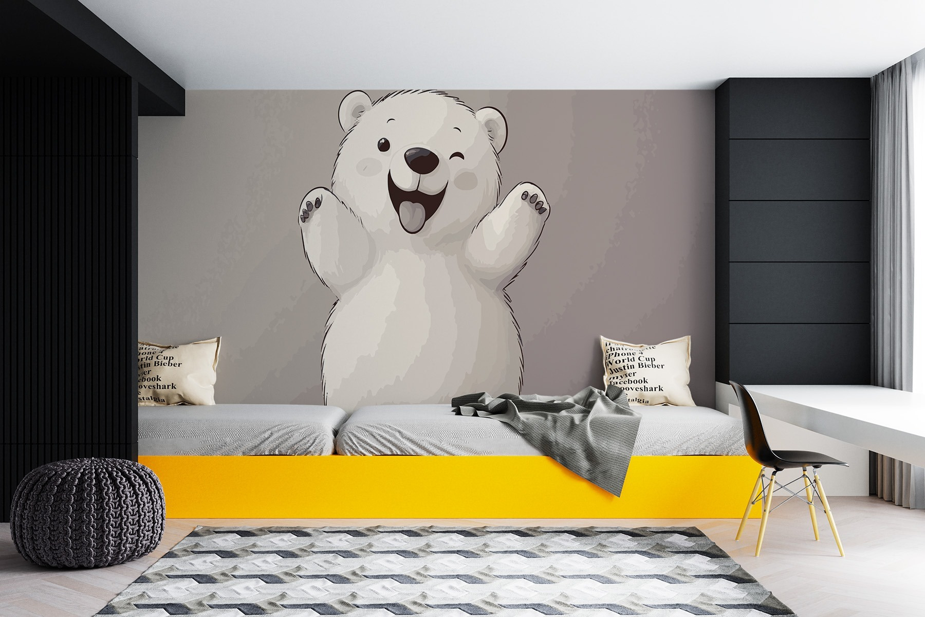 Rozjaśnij każde pomieszczenie dzięki tej uroczej fototapecie przedstawiającej wesołego niedźwiedzia polarnego! Z jego figlarnym uśmiechem i przyjazną falą, ten uroczy wzór jest idealny do przestrzeni dziecięcych lub każdego zakątka, który potrzebuje odrobiny radości. Wyobraź sobie, że wchodzisz do pokoju, w którym wita cię ten mały człowieczek – mowa o natychmiastowym szczęściu! To tak, jakby mieć puszystego przyjaciela na ścianie, który sprawia, że każda wizyta jest jak przygoda. Ponadto delikatne kolory sprawiają, że łatwo jest go dopasować do niemal każdego wystroju. Wyobraź sobie śmiech i historie, które może zainspirować ta fototapeta!