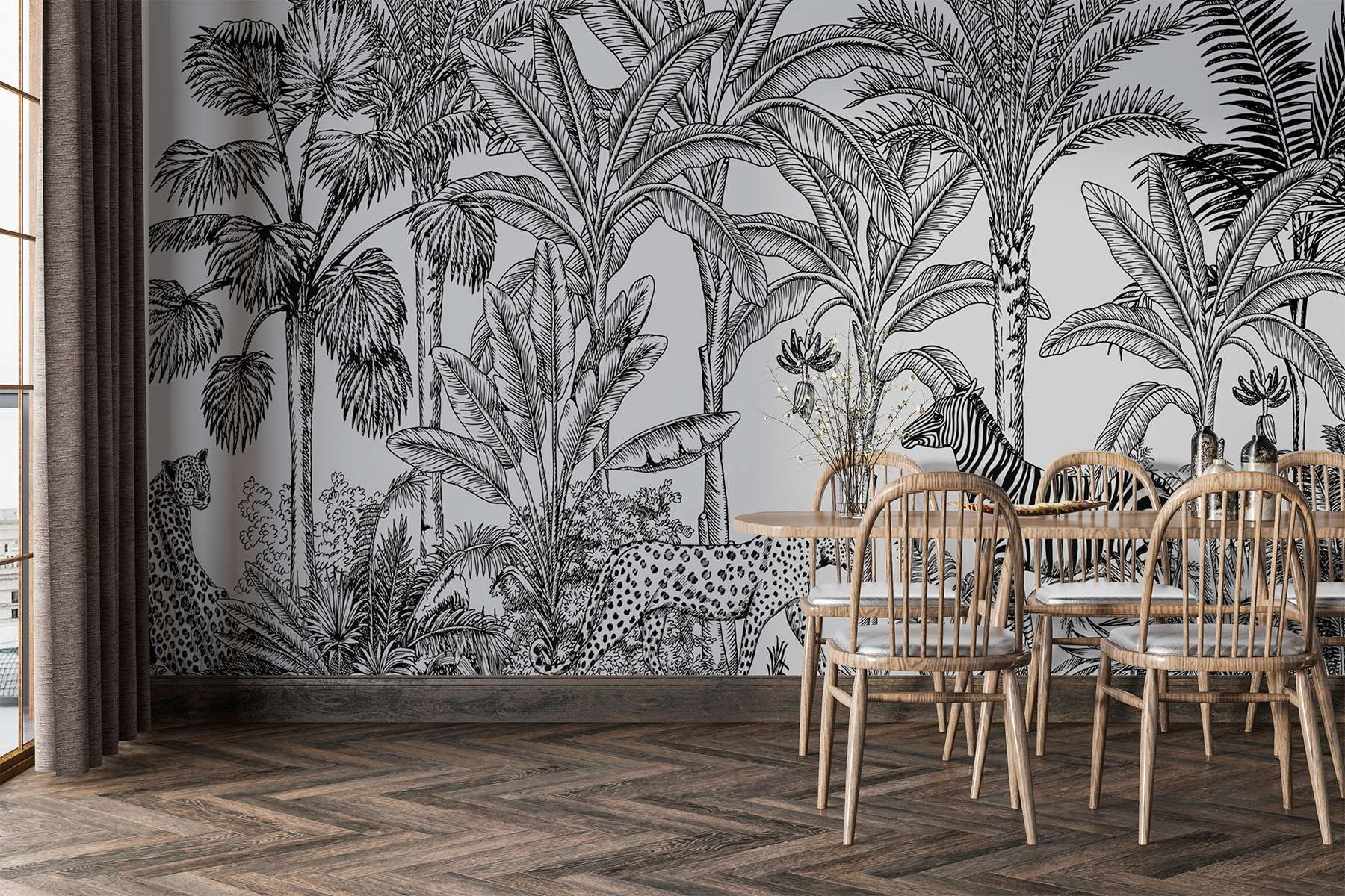 Przekształć dowolną przestrzeń w dziką przygodę dzięki tej zachwycającej fototapecie przedstawiającej zebry i lamparty wylegujące się w bujnej dżungli. Wyobraź sobie, że wchodzisz do swojego salonu i czujesz się jak w tropikalnym raju. Misterne detale zwierząt i żywe liście zachęcają oko do eksploracji, sprawiając, że każde spojrzenie staje się mini-wakacją dla zmysłów.