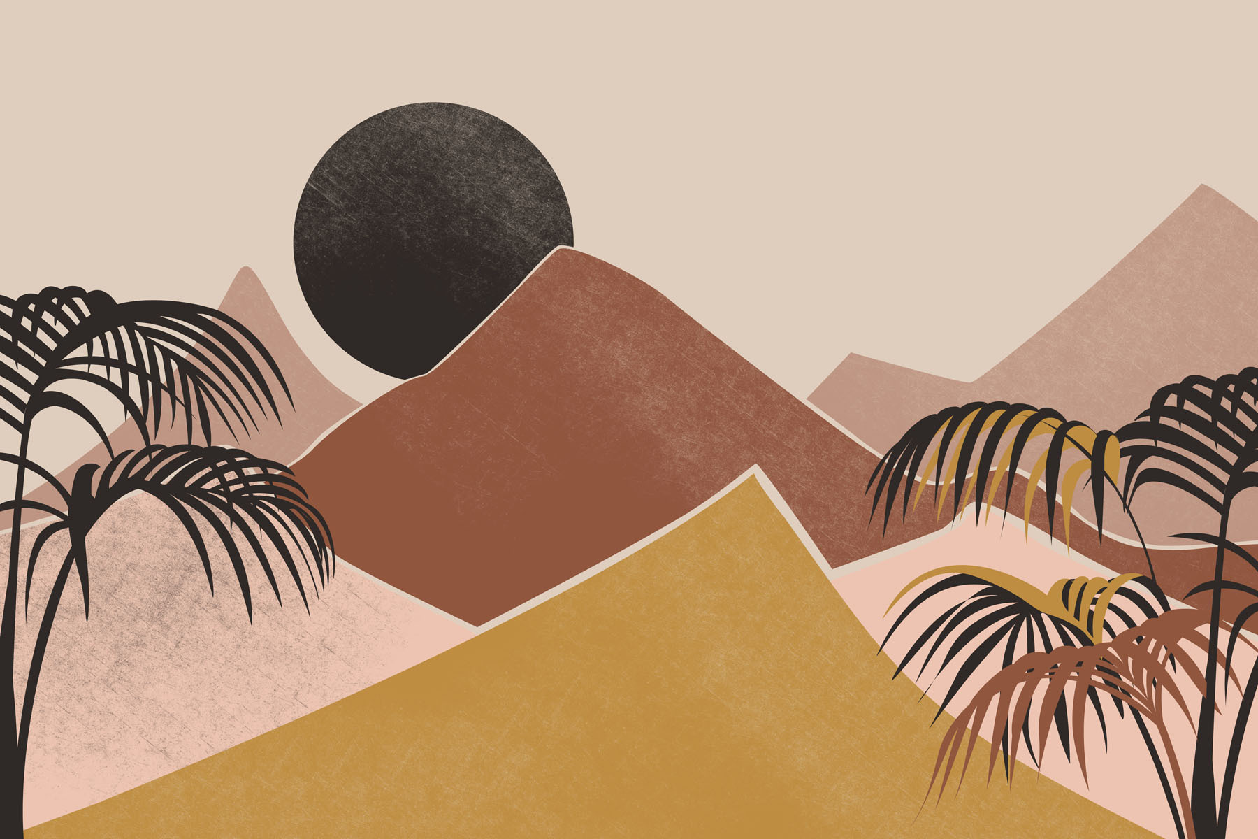 Odmień każde pomieszczenie dzięki tej oszałamiającej fototapecie ściennej “Krajobraz z palmami i górami”. Wyobraź sobie, że za każdym razem, gdy na nią spojrzysz, przenosisz się do przytulnego miejsca ucieczki. Ciepłe, ziemiste odcienie w połączeniu z sylwetkami kołyszących się palm sprawiają, że jest to idealne tło dla marzeń o odległych miejscach. Ta fototapeta szepcze “wakacyjne wibracje” i działa cuda w salonie, sypialni, a nawet w kreatywnym kąciku. Czuje się jak delikatny uścisk natury, w samym domu. Ponadto te góry obiecują przygody bez opuszczania sofy – kto mógłby się oprzeć?
