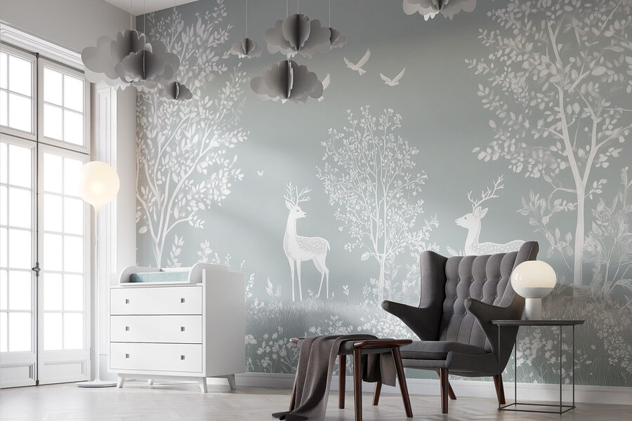 Przekształć swoją przestrzeń w spokojną ucieczkę dzięki tej czarującej fototapecie ściennej przedstawiającej wdzięczne białe jelenie wędrujące po miękkim, liściastym lesie. Wyobraź sobie, że wchodzisz do swojego pokoju i czujesz się, jakbyś zawędrował do sennego lasu wypełnionego delikatnymi szeptami natury. Delikatne ptaki fruwające nad nim dodają odrobinę kaprysu, czyniąc go idealnym tłem dla przytulnych wieczorów lub inspirujących poranków. To jak spokojne odosobnienie w domu! Niezależnie od tego, czy popijasz herbatę, czy czytasz książkę, ta fototapeta zachęca do tych słodkich chwil spokoju. Ponadto jest to świetny początek rozmowy – kto nie chciałby porozmawiać o swoim sekretnym lesie?