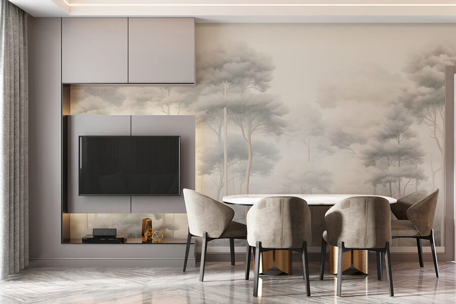 Wejdź w spokój dzięki tej oszałamiającej fototapecie ściennej “Grupa drzew w mglistym lesie”. Wyobraź sobie, że budzisz się w przytulnym zakątku otoczonym wysokimi drzewami, których sylwetki delikatnie spowija mgła. To tak, jakby zaprosić kawałek natury do swojego domu – nie są wymagane buty turystyczne! Idealny na leniwe poranki, kiedy kawa smakuje lepiej w spokoju. Delikatne odcienie wprowadzają spokój, sprawiając, że każda przestrzeń staje się spokojnym azylem. Co więcej, ten obraz pobudzi marzenia o leśnych przygodach lub przytulnych nocach przy ognisku. Zapomnij o gładkich ścianach – ta fototapeta to sekret przytulnego uroku!