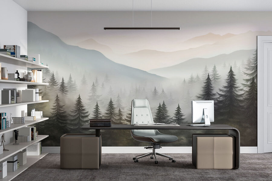 Wyobraź sobie, że wkraczasz do spokojnego lasu, gdzie mgła tańczy wokół wysokich drzew, a góry majaczą w oddali. Ta fototapeta “Mglisty krajobraz z drzewami i górami” przenosi tę senną ucieczkę wprost do twojego domu. Jest idealna do przytulnego kącika do czytania lub sypialni zen, zachęcając do poczucia spokoju. Wyobraź sobie, że relaksujesz się tutaj po długim dniu, może z filiżanką herbaty, podczas gdy natura szepcze słodkie nuty przez mgłę. Delikatne odcienie dodają odrobinę elegancji, sprawiając, że twoja przestrzeń poczuje się jak mały kawałek raju. Dzięki tej fototapecie przekształcenie ścian w spokojny azyl to tylko krok!