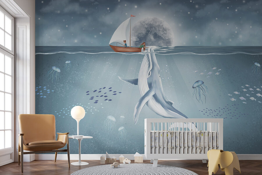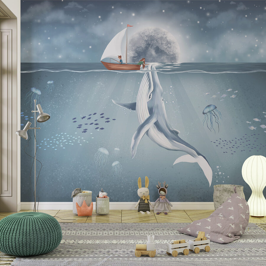 Zanurz się w świecie cudów z fototapetą ścienną “Wieloryb pływający w wodzie”. Ta fototapeta przekształca każdą nudną ścianę w spokojną podwodną scenę, w której majestatyczny wieloryb płynie z gracją pod falami. Wyobraź sobie: siedzisz w swoim salonie, popijając herbatę, a przed tobą roztacza się spokojne piękno oceanu. Miękkie błękity i delikatne biele tworzą uspokajającą atmosferę, idealną do relaksu po długim dniu. Ponadto pobudza do rozmów – każdy uwielbia dobre historie o wielorybach! Wyobraź sobie, że przyjaciele wędrują, otwierając oczy na tę spokojną oceaniczną ucieczkę. Idealny do pokoju dziecięcego lub przytulnego kącika do czytania, to jak przyniesienie kawałka morza do domu. Ujmij piękno natury i zrób plusk w swoim wystroju!