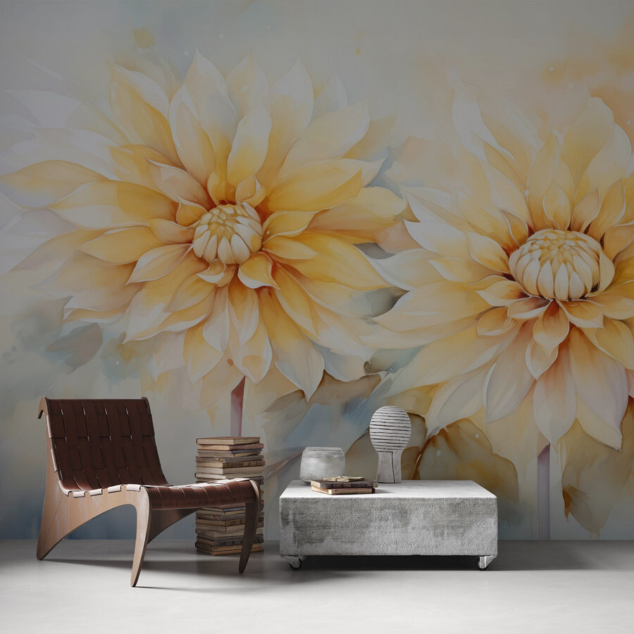 Odmień każdą przestrzeń dzięki tej oszałamiającej fototapecie ściennej z żywymi kwiatami na delikatnym białym tle. To jak zaproszenie wesołego ogrodu do swojego domu! Wyobraź sobie, że budzisz się przy tych wspaniałych kwiatach, których ciepłe żółte płatki rozjaśniają nawet najbardziej ponure dni. To nie tylko dekoracja; to mały kawałek natury, który przynosi radość i spokój. Idealna do przytulnego salonu lub spokojnej sypialni, ta fototapeta szepcze “zrelaksuj się” swoimi delikatnymi akwarelowymi wibracjami. Kto nie chciałby marzyć przed tymi pięknościami? Dodatkowo, twoi znajomi mogą pomyśleć, że masz sekretny zielony kciuk!