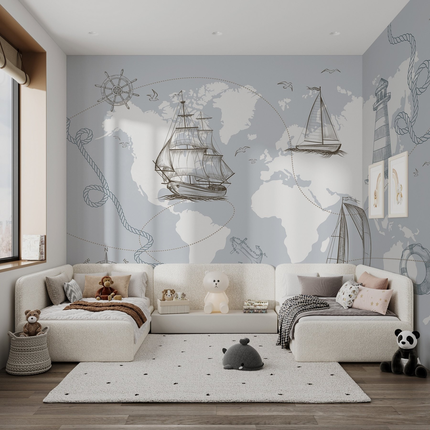 Przekształć dowolny pokój w morską ucieczkę dzięki tej uroczej fototapecie ściennej przedstawiającej mapę świata wraz z kapryśnymi statkami i latarnią morską. Wyobraź sobie historie, które te statki mogłyby opowiedzieć, żeglując po bezkresnych morzach. Idealna do stworzenia przytulnego kącika, w którym można marzyć o przygodach lub po prostu zrelaksować się z książką. Subtelne wzory bez wysiłku wtapiają się w różne przestrzenie, dodając głębi i intrygując. Znajomi będą zachwyceni tym wyjątkowym akcentem, a kto wie, może nawet zainspiruje to spontaniczny plan podróży lub dwa! Zakotwicz więc te kapryśne wibracje w swoim domu.