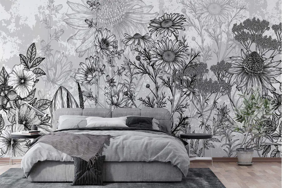 Odmień swoją przestrzeń dzięki tej oszałamiającej czarno-białej fototapecie ściennej z misternymi wzorami kwiatowymi, które wprowadzą odrobinę natury do wnętrza – bez uciążliwych pyłków! Wyobraź sobie, że budzisz się każdego ranka witany elegancją stokrotek i lilii. Delikatne linie i piękne, szczegółowe płatki dodają wyrafinowanego uroku, idealnego dla tych, którzy cenią sobie subtelne piękno. To tak, jakby mieć galerię sztuki w swoim salonie. To dopiero początek rozmowy! Niezależnie od tego, czy rozjaśnia cichy kąt, czy stanowi odważny akcent za sofą, bez wysiłku podnosi rangę każdej przestrzeni. Idealny zarówno dla miłośników przyrody, jak i entuzjastów sztuki!