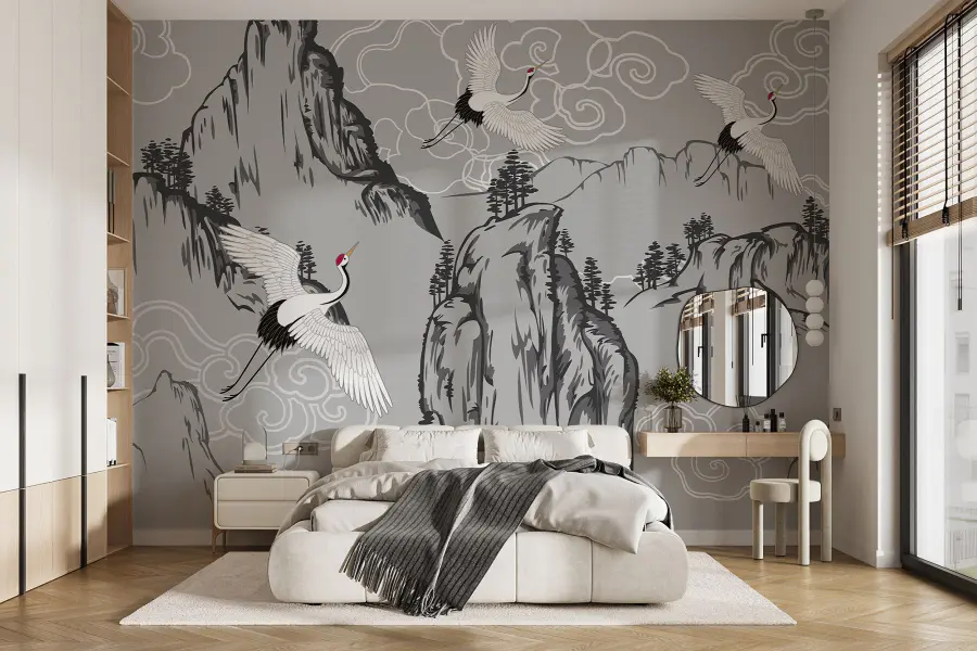 Przekształć swoje ściany w spokojną ucieczkę dzięki tej oszałamiającej fototapecie ściennej z wdzięcznymi żurawiami pośród majestatycznych gór. Wyobraź sobie, że wchodzisz do spokojnego świata za każdym razem, gdy wchodzisz do pokoju – te eleganckie ptaki wydają się tańczyć w powietrzu, zapraszając spokojne wibracje do twojej przestrzeni. Delikatne tło w odcieniach szarości dodaje odrobinę wyrafinowania, jednocześnie zachowując przytulny charakter. To tak, jakby natura znalazła drogę do twojego domu, dzięki czemu idealnie nadaje się do spokojnego kącika do czytania lub tej wymarzonej jadalni. Kto nie chciałby popijać filiżanki herbaty w otoczeniu takiego piękna? To nie tylko tapeta; to codzienny kawałek spokoju.