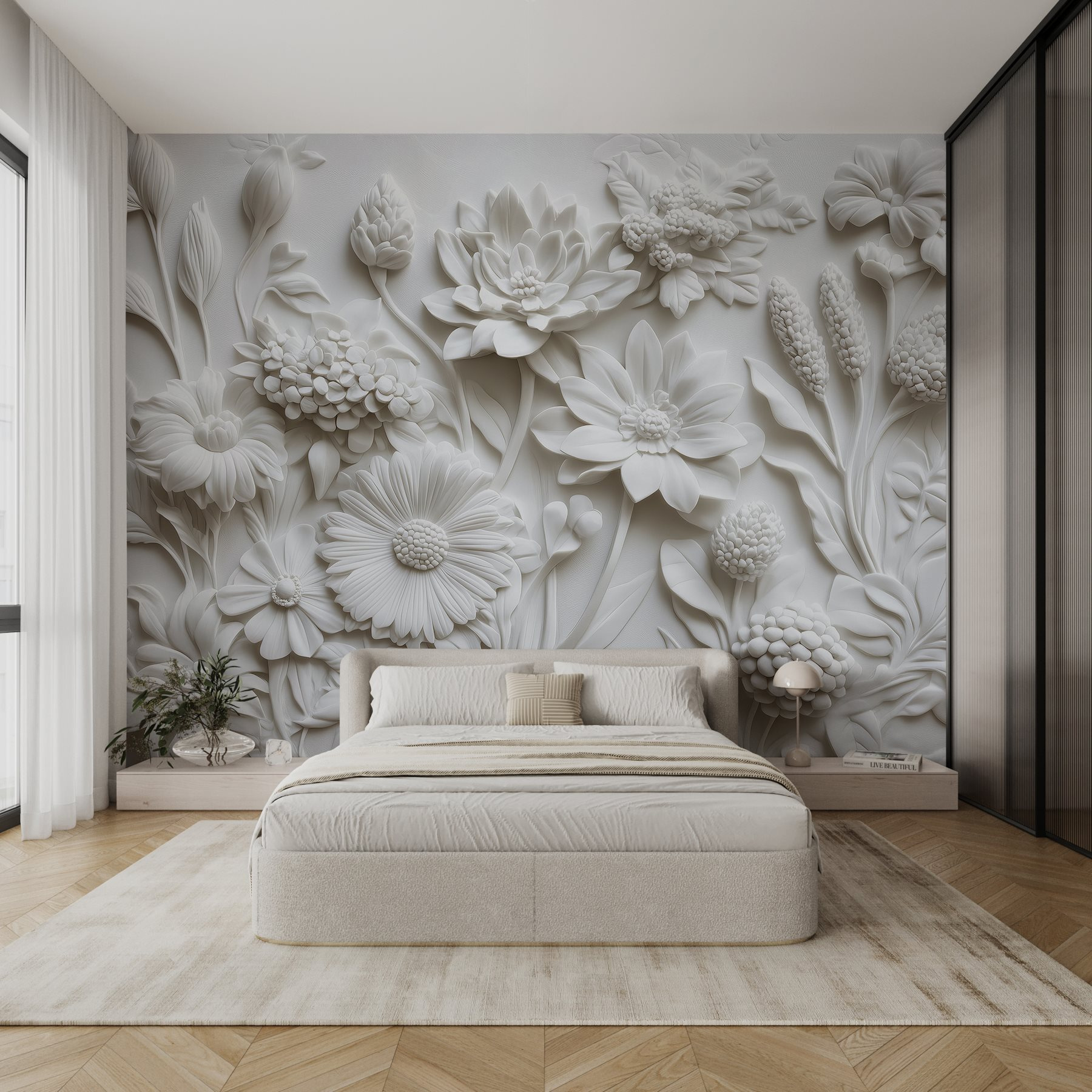 Przekształć dowolny pokój w spokojną ucieczkę dzięki tej zachwycającej fototapecie ściennej z oszałamiającą rzeźbą białego kwiatu. To nie tylko sztuka – to jak wzięcie głębokiego oddechu świeżym powietrzem w wiosenny poranek. Wyobraź sobie, że wchodzisz do przestrzeni, w której kwiaty kwitną wiecznie, a ich wdzięczne kształty zachęcają do ciepła. Każdy płatek zdaje się szeptać historie o cichym pięknie natury, przywołując wspomnienia słonecznych ogrodów i łagodnej bryzy. Idealna do wprowadzenia spokojnych wibracji do sypialni lub przytulnego kącika, ta fototapeta otuli twoje ściany eleganckim uściskiem bez żadnego zamieszania. Znajomi z pewnością będą pytać, skąd wzięło się to piękne tło – wyobraź sobie tylko uśmiechy!