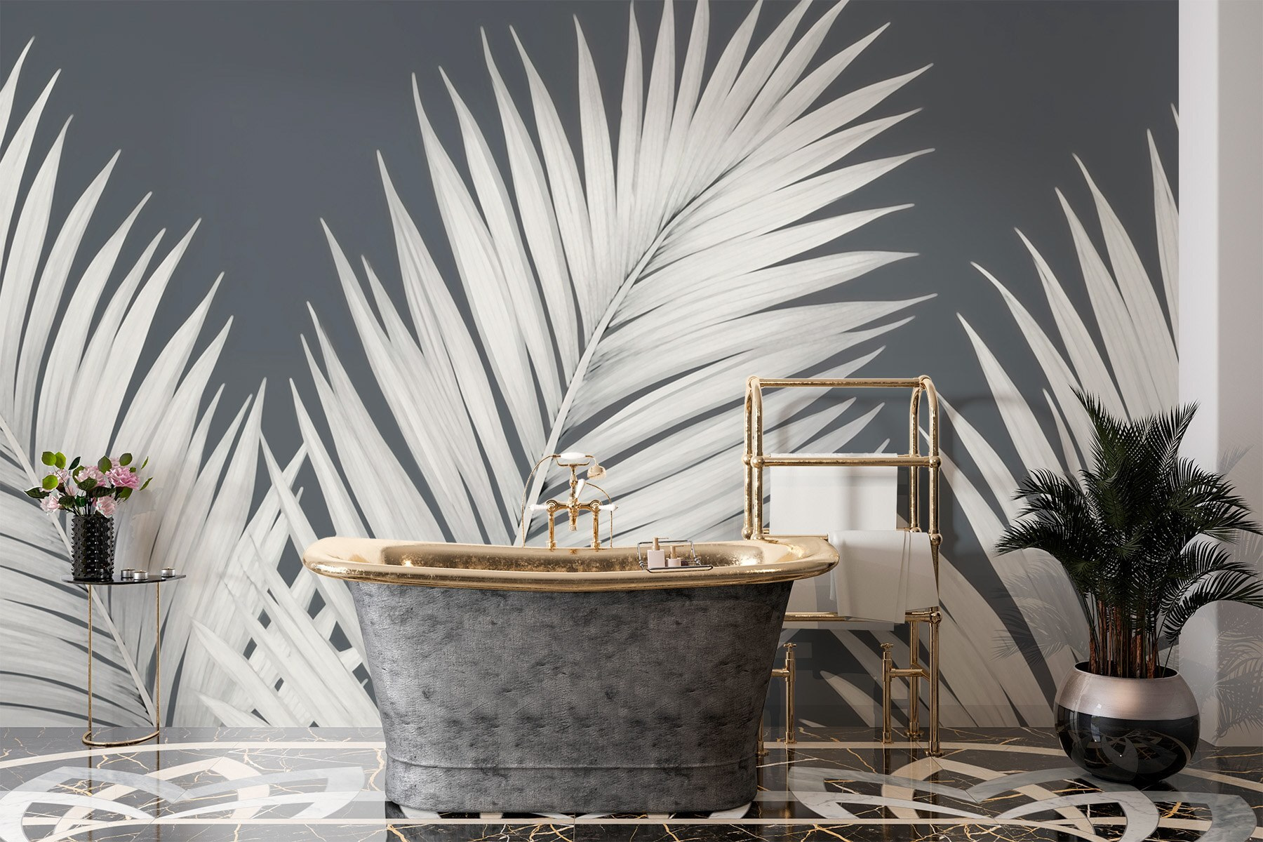 Przekształć swoją przestrzeń w tropikalną ucieczkę dzięki tej oszałamiającej fototapecie z eleganckimi liśćmi palmowymi na chłodnym szarym tle. To jak przeniesienie kawałka raju prosto do salonu – bez piasku między palcami u stóp. Wyobraź sobie popijanie porannej kawy lub zagłębianie się w książce w otoczeniu tych wspaniałych liści. Subtelne odcienie tworzą uspokajającą atmosferę, sprawiając, że każde pomieszczenie nabiera szyku. Idealna dla tych, którzy chcą poczuć smak natury bez konieczności konserwacji – nie wymaga podlewania! Ta fototapeta szepcze stylem i spokojem, sprawiając, że trudno się nie uśmiechnąć za każdym razem, gdy przechodzisz obok.