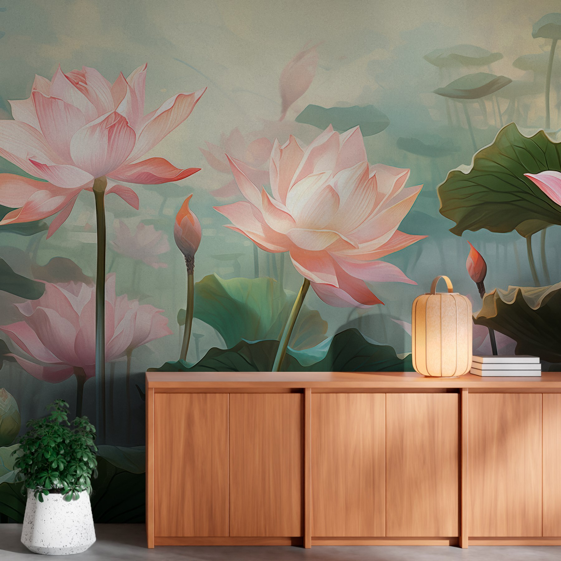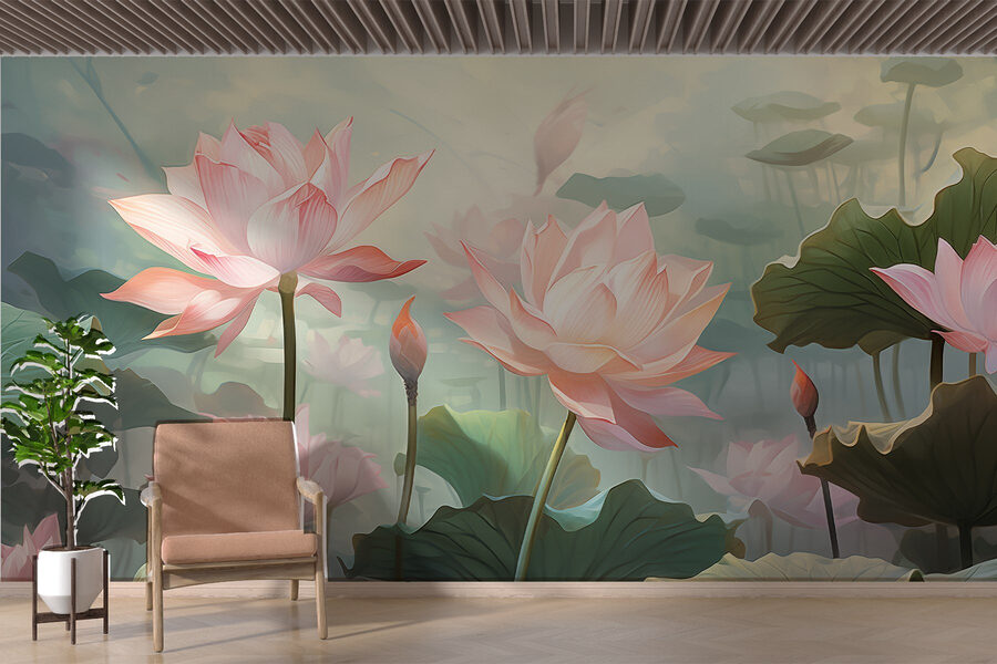 Przekształć dowolny pokój w spokojną oazę dzięki tej oszałamiającej fototapecie przedstawiającej zachwycającą grupę różowych kwiatów położonych wśród bujnych zielonych liści. Wyobraź sobie, że wchodzisz do swojej przestrzeni i czujesz natychmiastowy spokój, niczym delikatna bryza w ciepły dzień. Miękkie odcienie i delikatne detale zachęcają do poczucia spokoju, dzięki czemu idealnie nadają się do przytulnego kącika do czytania, a nawet do tętniącej życiem kuchni.