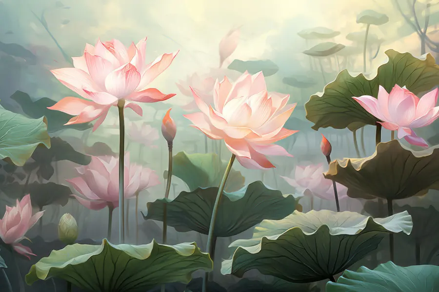 Przekształć dowolny pokój w spokojną oazę dzięki tej oszałamiającej fototapecie przedstawiającej zachwycającą grupę różowych kwiatów położonych wśród bujnych zielonych liści. Wyobraź sobie, że wchodzisz do swojej przestrzeni i czujesz natychmiastowy spokój, niczym delikatna bryza w ciepły dzień. Miękkie odcienie i delikatne detale zachęcają do poczucia spokoju, dzięki czemu idealnie nadają się do przytulnego kącika do czytania, a nawet do tętniącej życiem kuchni.