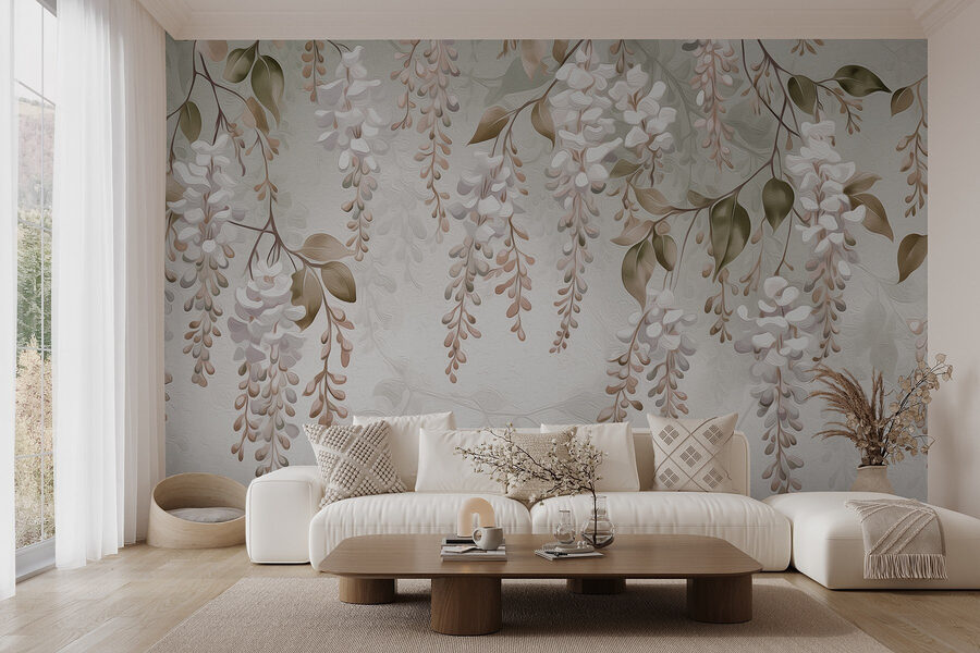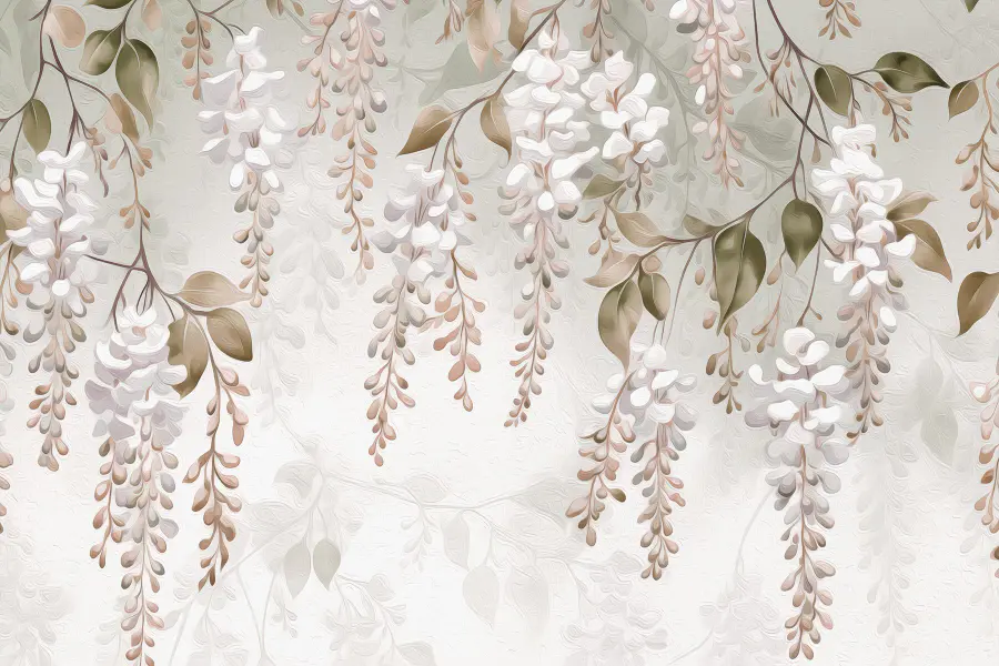 Przekształć swoją przestrzeń dzięki “Delicate Blossoms in Soft Hues”, gdzie natura spotyka się ze sztuką w najsłodszy sposób. Wyobraź sobie, że wchodzisz do pokoju, w którym czujesz się jak w delikatny wiosenny dzień, dzięki tym kojącym fototapetom. Delikatna lawenda i stonowana zieleń tworzą spokojną atmosferę, idealną do relaksu po długim dniu. Wyobraź sobie popijanie herbaty, rozkoszując się pięknem kaskadowych kwiatów, które wydają się kołysać na wietrze. To jak przeniesienie małego ogrodu do domu – bez uciążliwych pyłków! Niezależnie od tego, czy jest to przytulny kącik do czytania, czy stylowy salon, ta fototapeta doda uroku i spokoju każdemu zakątkowi. Czy nie nadszedł czas, aby odmienić ściany tak, jak na to zasługują?