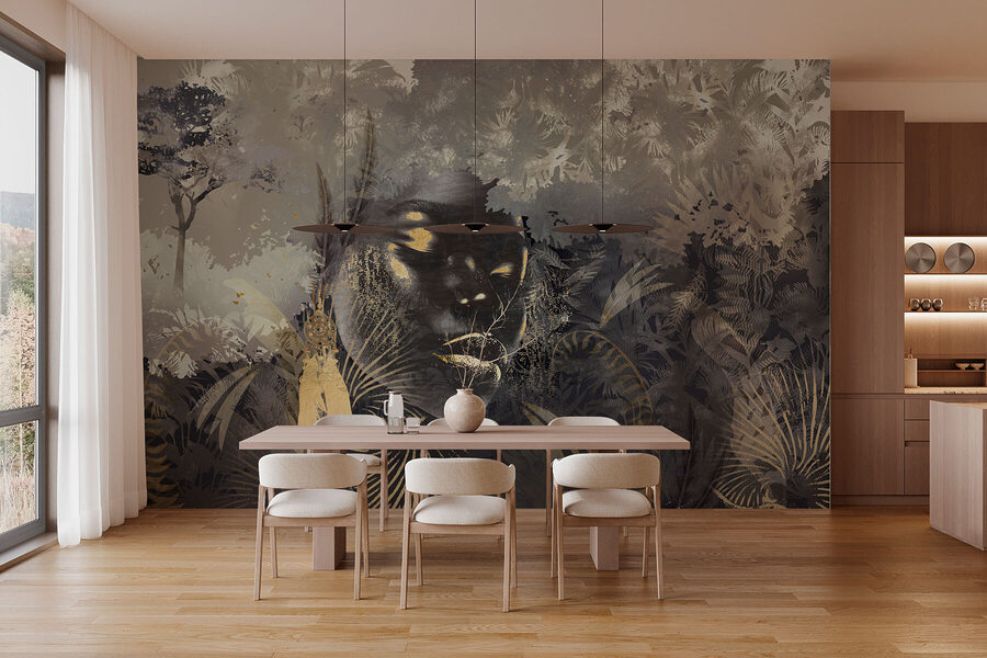 Wkrocz do świata, w którym sztuka zderza się z naturą! Ta fototapeta “Tajemnicze piękno w objęciach natury” przenosi dżunglę wprost do twojej przestrzeni życiowej. Wyobraź sobie popijanie porannej kawy w otoczeniu tropikalnych wibracji i szepczących liści – to dopiero nastrój! Delikatne, ziemiste kolory i misterne wzory wciągają, sprawiając, że każde spojrzenie staje się mini ucieczką. Przyjaciele mogą nawet zgubić się w szczegółach, chichocząc o “zgubieniu się w lesie” bez wychodzenia z domu. Przekształć swoje ściany w spokojną ucieczkę – kto wiedział, że natura może być tak przytulna?