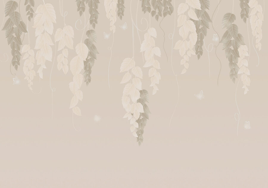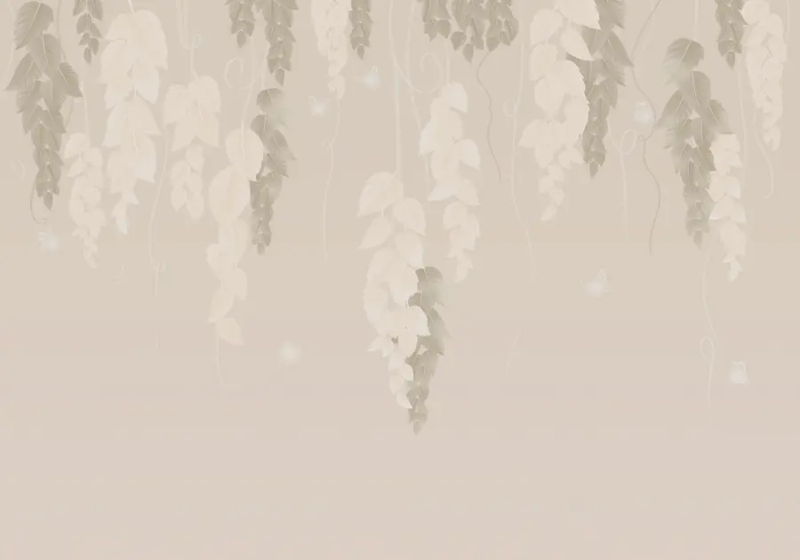 Przekształć swoją przestrzeń w spokojne miejsce dzięki tej uroczej fototapecie ściennej z delikatnymi liśćmi i kapryśnymi motylami. Wyobraź sobie, że wchodzisz do pokoju, w którym otacza cię delikatna elegancja natury – to jak wejście na spokojną leśną polanę bez wychodzenia z domu. Delikatne odcienie zieleni i kremu tworzą uspokajającą atmosferę, idealną do relaksu po długim dniu lub popijania kawy w leniwy niedzielny poranek.