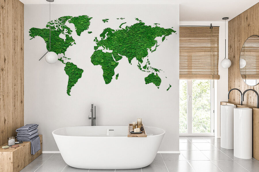 Odmień swoją przestrzeń dzięki tej oszałamiającej fototapecie ściennej przedstawiającej mapę świata wykonaną w całości z bujnych zielonych roślin. To jak przeniesienie kawałka natury do wnętrza – nie wymaga podlewania! Wyobraź sobie, że przytulasz się w pokoju, w którym kontynenty są wykonane z żywej zieleni. Wzbudza to ciekawość i rozmowy, idealne na te chwile “gdzie jest to miejsce?”. Dodatkowo, daje to uspokajającą atmosferę, jak głęboki oddech świeżego powietrza. Czy to w salonie, czy w biurze, ta fototapeta z pewnością zainspiruje do wędrówek. Kto wiedział, że wystrój może być tak odważny?