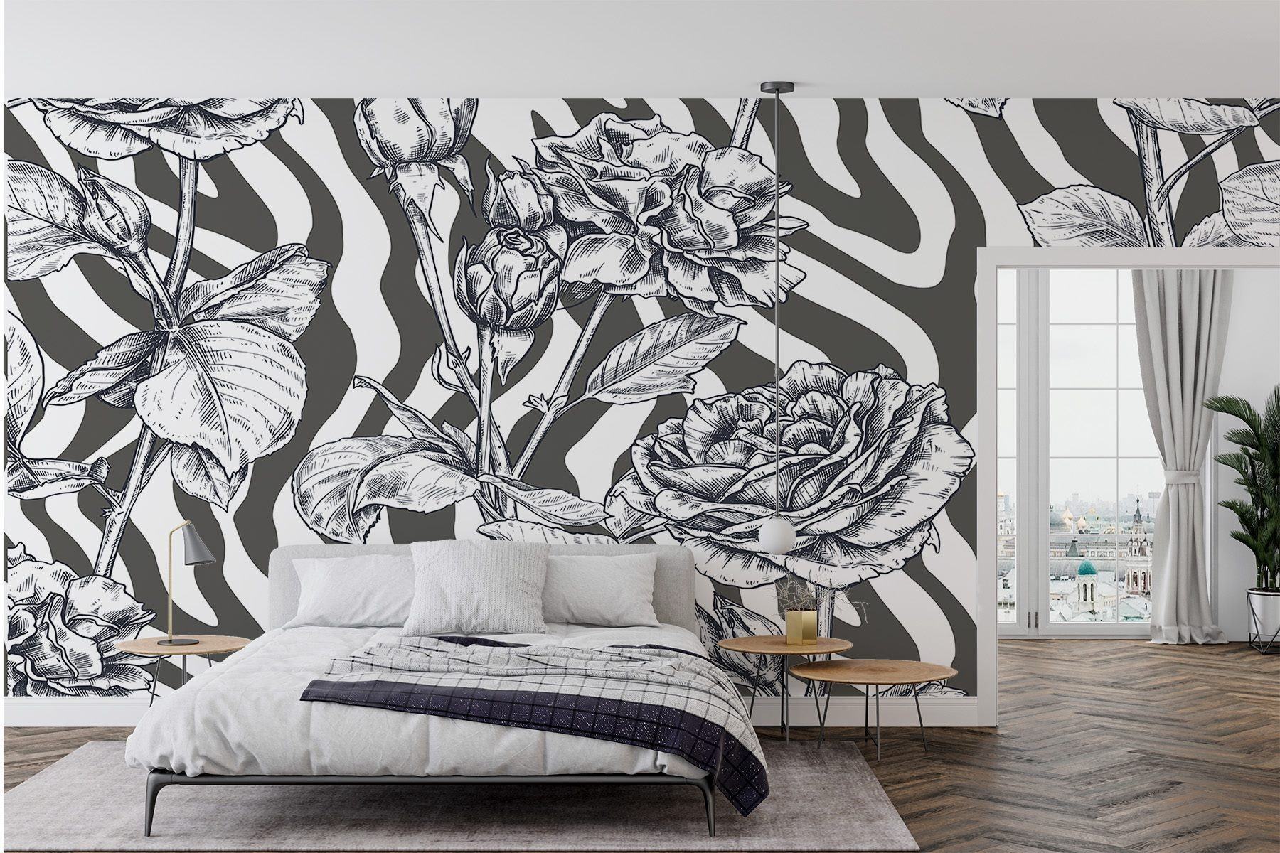 Przekształć swoje ściany w oszałamiającą wizualną ucztę dzięki tej czarno-białej fototapecie z różami. To jak posiadanie ogrodu, który nigdy nie więdnie, bez konewki i okazjonalnych robaków. Delikatne kwiaty tańczą na eleganckim, pasiastym tle, dodając odrobinę krawędzi bez popadania w przesadę. Wyobraź sobie, że popijasz poranną kawę lub zwijasz się z książką, otoczony tym eleganckim kwiatowym pięknem. Niezależnie od tego, czy jest to przytulny salon, czy stylowe biuro, ta fototapeta wnosi odrobinę uroku natury z nowoczesnym akcentem. Idealna dla każdego, kto pragnie odrobiny osobowości – nie wymaga zielonych kciuków!