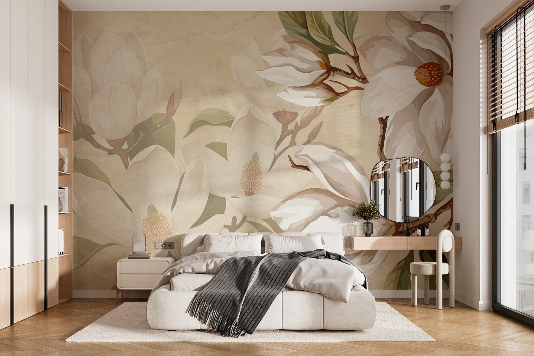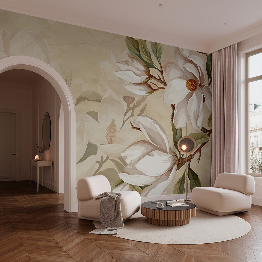 Przekształć swoją przestrzeń w spokojną oazę dzięki “Delicate Blooms in Soft Tones”. Ta oszałamiająca fototapeta wnosi delikatny szept natury prosto do twojego domu. Wyobraź sobie, że budzisz się przy delikatnej elegancji kwitnących magnolii, których kremowe płatki i bujne zielone liście tworzą uspokajającą atmosferę. Niezależnie od tego, czy jest to salon, sypialnia, czy nawet przytulny kącik, ta fototapeta otuli ściany delikatnym uściskiem. To jak zaproszenie delikatnej ogrodowej bryzy do wnętrza. Idealna dla tych, którzy uwielbiają odrobinę spokoju i stylu, ta fototapeta wywoła radość i odrobinę inspiracji każdego dnia. Kto nie chciałby poczuć się jak o krok od spokojnego japońskiego ogrodu?
