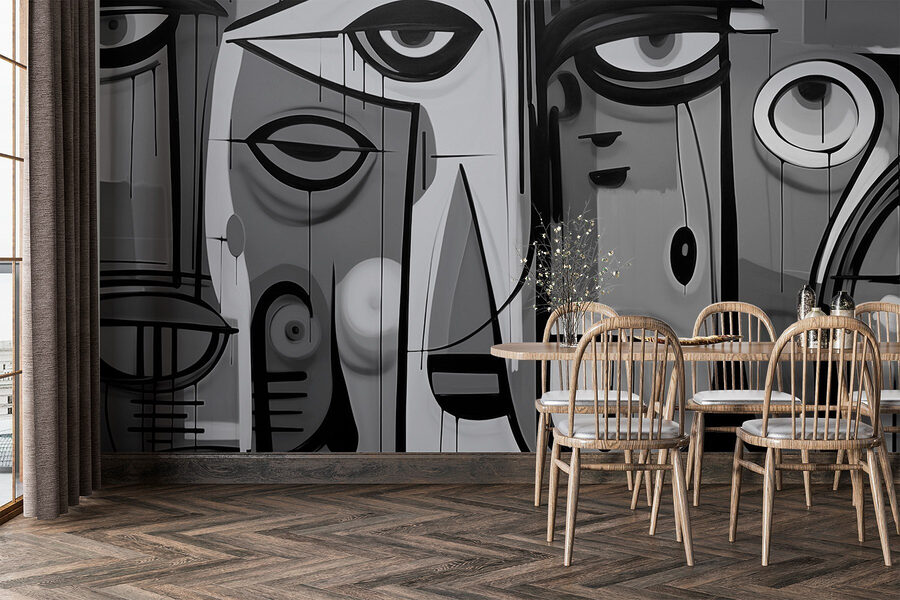 Przekształć swoją przestrzeń za pomocą tej uderzającej czarno-białej fototapety ściennej, przedstawiającej urzekające twarze, które wydają się zaglądać do twojego świata. To jak rozmowa ze sztuką – pełna emocji i intryg. Wyobraź sobie: wchodzisz do pokoju i bum! Te wyraziste twarze przyciągają cię, wzbudzając ciekawość, a może nawet uśmiech. Idealny do salonu lub kreatywnego kącika, dodaje warstwę głębi bez wszystkich kolorów walczących o uwagę. Ponadto jest to fantastyczny lodołamacz dla każdego, kto wpadnie w odwiedziny. Kto nie chciałby zastanowić się nad historiami kryjącymi się za tymi intensywnymi spojrzeniami? Idealnie współczesny i bez wysiłku szykowny!