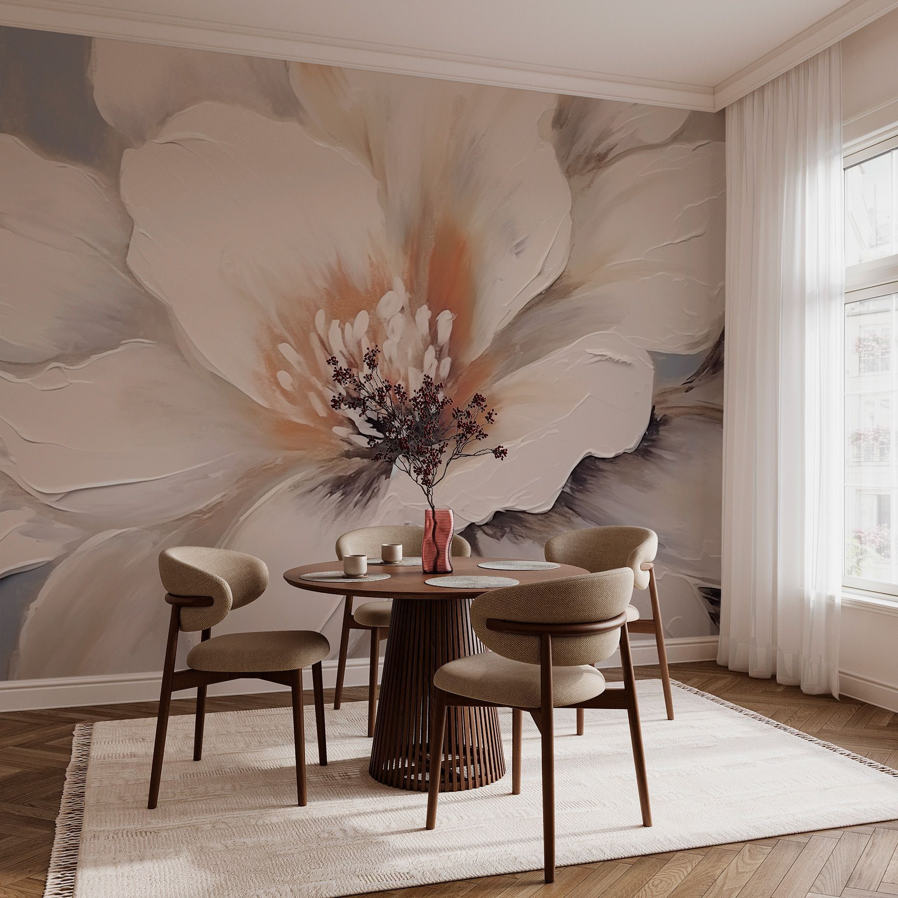 Przekształć każde pomieszczenie w oazę spokoju z fototapetą “Delicate Petals in Soft Hues”. Wyobraź sobie wędrówkę przez spokojny ogród, w którym zwiewne kwiaty szepczą słodkie sekrety w delikatnych tonach. Ta fototapeta oddaje ten marzycielski klimat, wnosząc odrobinę natury do twojej przestrzeni. Idealna do przytulnych zakątków lub przestronnych ścian, dodaje delikatnej elegancji, która koi duszę. Wyobraź sobie zwijanie się w kłębek z dobrą książką, w otoczeniu tych wspaniałych piwonii. To tak, jakby mieć kawałek wiosny kwitnącej przez cały rok – nie wymaga podlewania! Twoje ściany będą Ci wdzięczne.