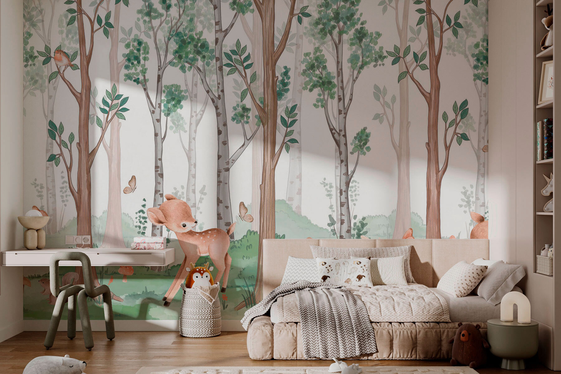 Przekształć swoje ściany w spokojną leśną ucieczkę dzięki tej uroczej fototapecie ściennej z zabawnymi zwierzętami i wysokimi, szepczącymi drzewami. Wyobraź sobie delikatną bryzę szeleszczącą liśćmi, gdy ciekawskie jelenie i wesołe króliczki odkrywają swój leśny dom. Każde spojrzenie na delikatne kolory tej fototapety może po prostu przenieść cię na spokojną polanę, gdzie wszystkie zmartwienia rozpływają się jak poranna mgła. Idealna do przytulnego salonu lub kapryśnego pokoju dziecięcego, zaprasza naturę do środka, pobudzając radość i wyobraźnię. To tak, jakby mieć kawałek lasu w domu – oczywiście pomijając robaki i błoto! Poważnie, czy wystrój może być bardziej przytulny?