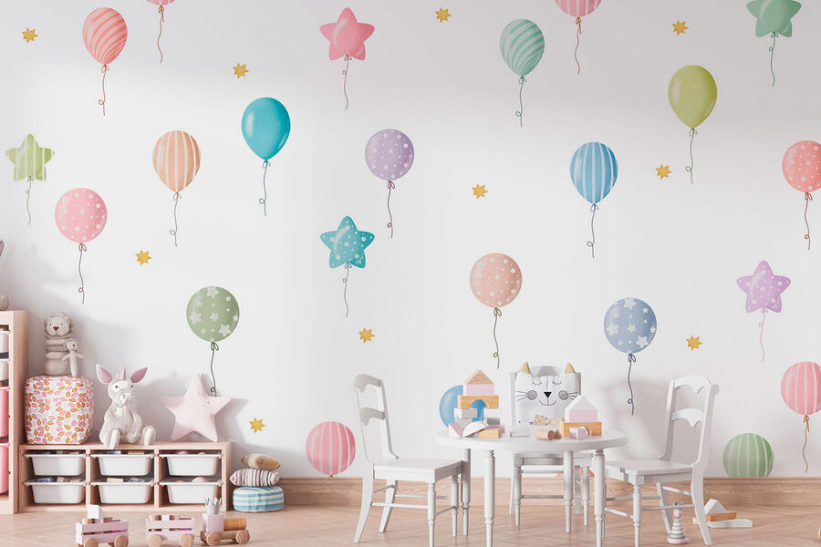 Rozjaśnij każde pomieszczenie dzięki tej zachwycającej fototapecie ściennej z uroczymi balonami i kapryśnymi gwiazdami! Wyobraź sobie, że wchodzisz do pomieszczenia, w którym pastelowe balony unoszą się dookoła, jakby były gotowe na imprezę, a zabawne gwiazdy migoczą tuż poza zasięgiem. To idealne rozwiązanie do pokoju dziecięcego, ale szczerze mówiąc, kto powiedział, że dorośli nie mogą rozkoszować się balonową magią? Wyobraź sobie maluchy śniące pod tym wesołym wzorem, czujące się jak w bajce. Wywołuje radość, śmiech i odrobinę nostalgii. Niech ta fototapeta wyzwoli poczucie przygody i kaprysu – idealna do przekształcenia nijakiej ściany w płótno marzeń!