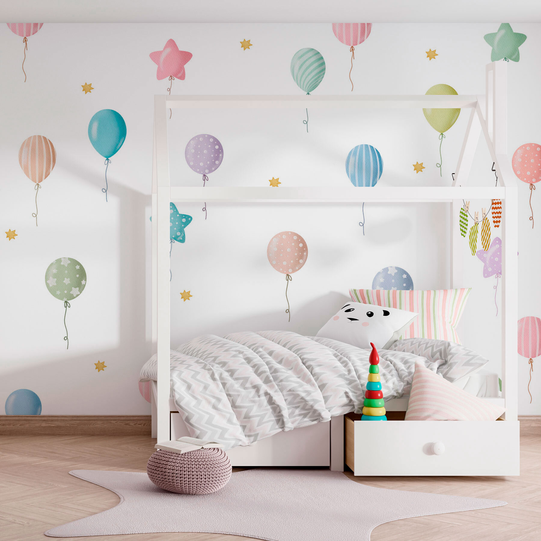 Rozjaśnij każde pomieszczenie dzięki tej zachwycającej fototapecie ściennej z uroczymi balonami i kapryśnymi gwiazdami! Wyobraź sobie, że wchodzisz do pomieszczenia, w którym pastelowe balony unoszą się dookoła, jakby były gotowe na imprezę, a zabawne gwiazdy migoczą tuż poza zasięgiem. To idealne rozwiązanie do pokoju dziecięcego, ale szczerze mówiąc, kto powiedział, że dorośli nie mogą rozkoszować się balonową magią? Wyobraź sobie maluchy śniące pod tym wesołym wzorem, czujące się jak w bajce. Wywołuje radość, śmiech i odrobinę nostalgii. Niech ta fototapeta wyzwoli poczucie przygody i kaprysu – idealna do przekształcenia nijakiej ściany w płótno marzeń!