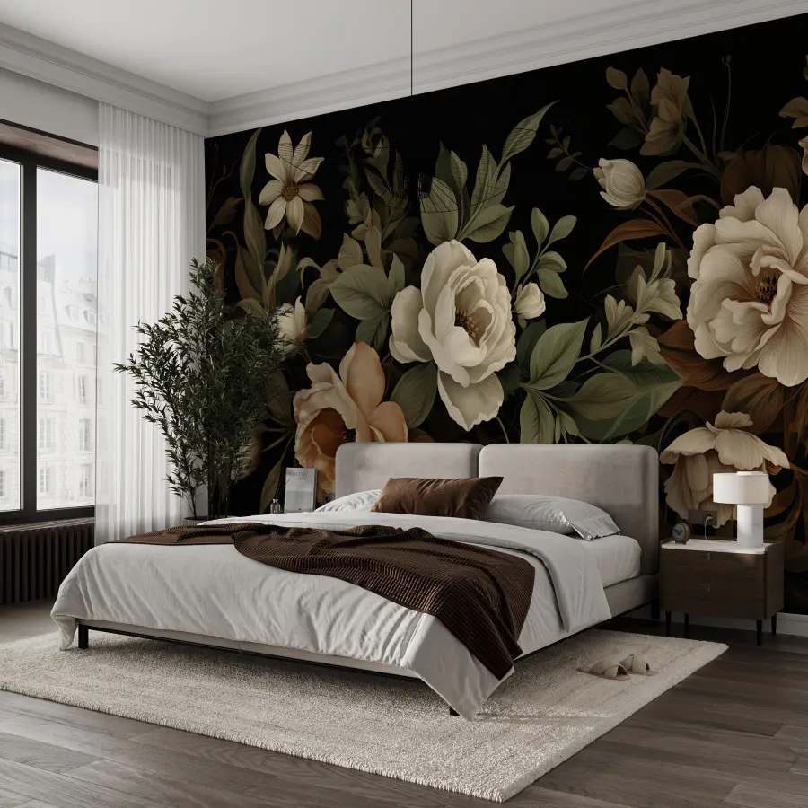 Odmień swoją przestrzeń za pomocą tej eleganckiej fototapety, na której bogate kwiaty tańczą na ciemnym tle. To jak przeniesienie sekretnego ogrodu do wnętrza, bez zabłoconych butów! Wyobraź sobie, że budzisz się w tych kojących kolorach, popijając poranną kawę, podczas gdy świat na zewnątrz pędzi obok. Szczegółowe płatki i liście zapraszają do kontaktu z naturą, tworząc spokojną atmosferę, idealną do relaksu lub kreatywności. Ponadto znajomi z pewnością będą chcieli wiedzieć, gdzie znalazłeś tak oszałamiający przedmiot – przygotuj się na poważne komplementy! To nie tylko dekoracja; to klimat, nastrój i małe przypomnienie o pięknie w codziennym życiu.