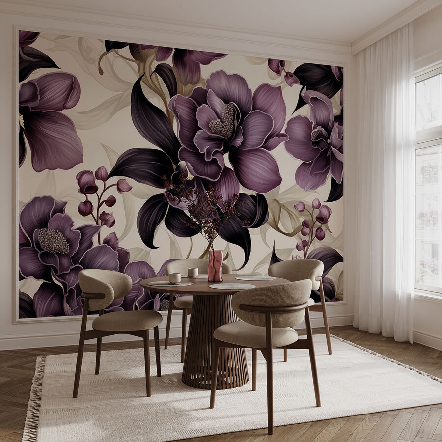 Przekształć dowolne pomieszczenie w botaniczną krainę marzeń dzięki tej eleganckiej fioletowej fototapecie w kwiaty. To jak przeniesienie bujnego ogrodu do wnętrza bez uciążliwych pyłków! Dramatyczne kwiaty w odcieniach głębokiego fioletu i delikatnej lawendy tańczą po ścianach, sprawiając, że każde spojrzenie staje się mini ucieczką do spokojnej oazy. Wyobraź sobie, że siedzisz z książką lub przyjmujesz przyjaciół, otoczony tymi oszałamiającymi kwiatami! Idealna do salonu, sypialni, a nawet uroczego małego zakątka, ta fototapeta obiecuje zamienić codzienne chwile w ucztę dla oczu. Dlaczego więc nie pozwolić swoim ścianom rozkwitnąć?