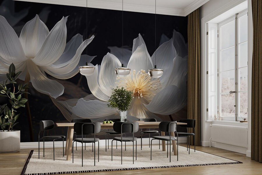 Przekształć każde pomieszczenie w spokojną oazę z fototapetą ścienną “Delicate Blooms in Soft Illumination”. Wyobraź sobie, że wchodzisz do przestrzeni, która przypomina spokojny ogród, gdzie wdzięczne kwiaty kąpią się w delikatnym świetle, szepcząc spokój do twojej duszy. To jak powiew świeżego powietrza dla twoich ścian! Wyobraź go sobie w przytulnym kąciku do czytania lub jasnej kuchni – subtelny, ale efektowny, przyciąga wzrok, nie krzycząc o uwagę. Idealna dla tych, którzy cenią sobie elegancję natury, ta fototapeta może sprawić, że poczujesz się jak w botanicznym zaciszu każdego dnia. Kto nie chciałby się tak obudzić?