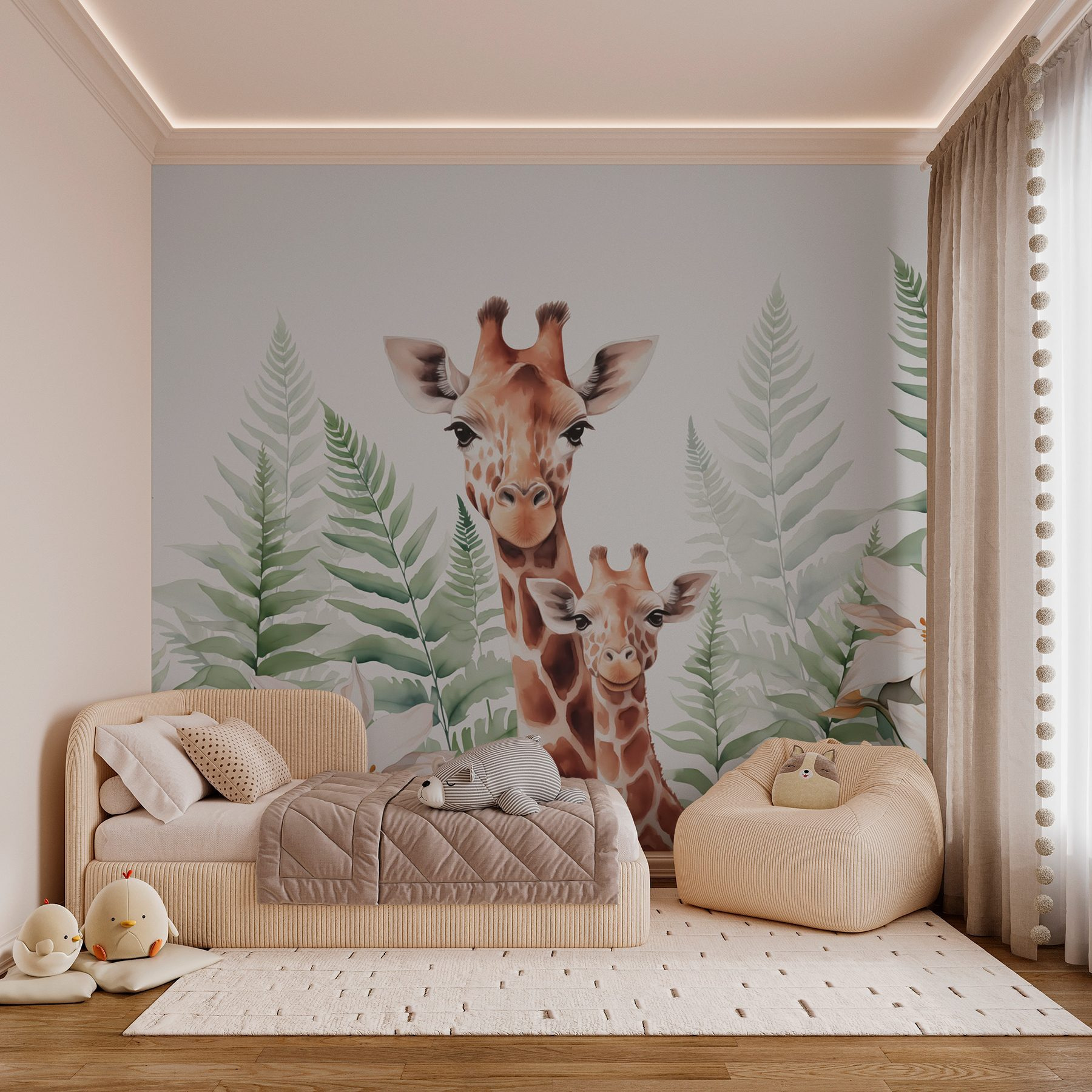 Przekształć swoją przestrzeń w kapryśny ogród dzięki tej zachwycającej fototapecie ściennej przedstawiającej wdzięczne żyrafy zerkające przez bujną zieleń i delikatne kwiaty. To jak przeniesienie odrobiny sawanny do swojego salonu! Wyobraź sobie popijanie porannej kawy, podczas gdy te łagodne olbrzymy czuwają nad tobą – tak spokojnie. Idealny do pokoju dziecięcego, pokoju zabaw lub wszędzie tam, gdzie przydałaby się odrobina zabawy i uroku. Poza tym, kto by się nie uśmiechnął na widok tych uroczych twarzyczek? To nie tylko dekoracja; to jak uścisk natury, zapraszający ciepło i radość do każdego zakątka.
