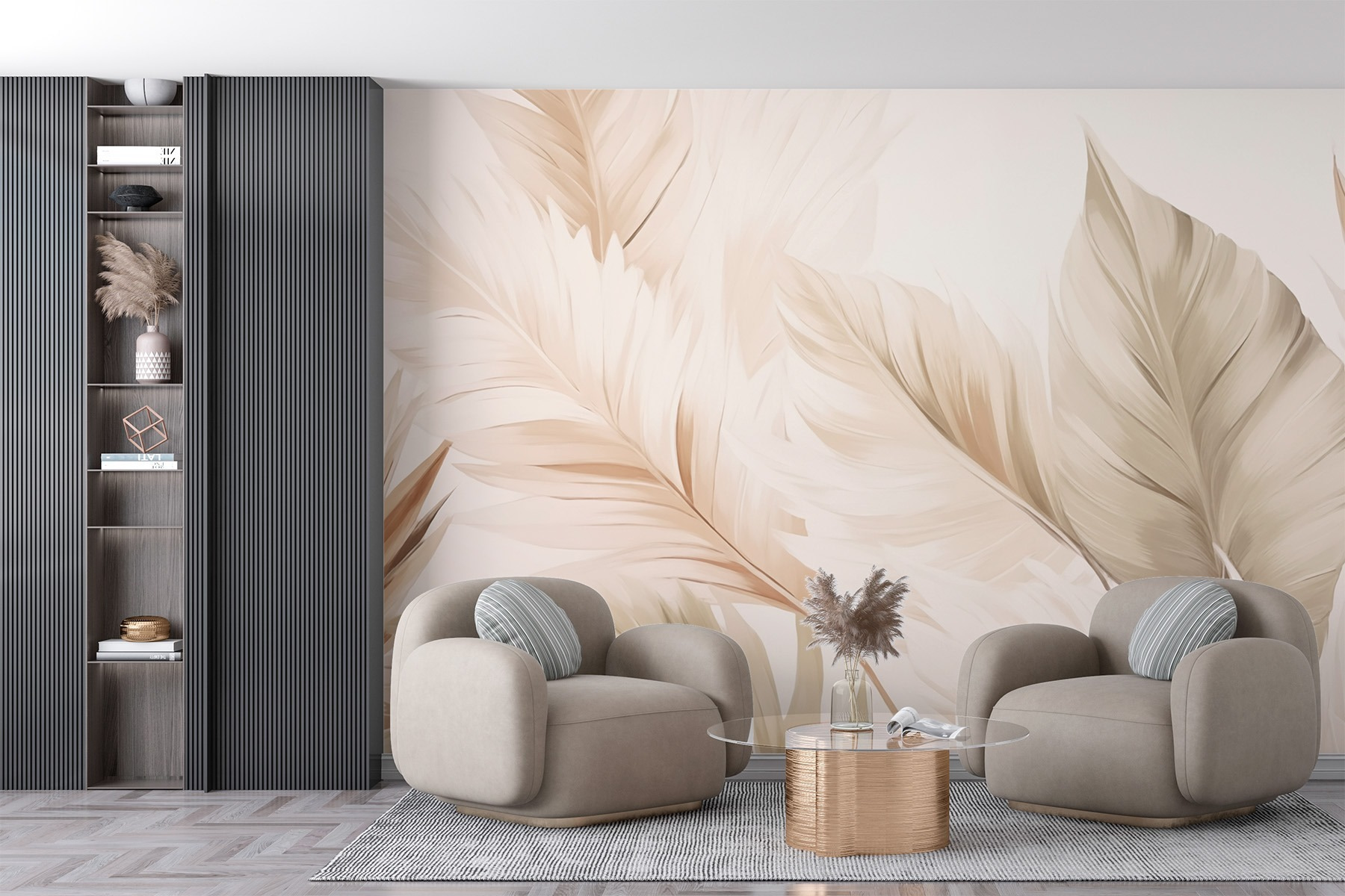 Wprowadź spokojne piękno natury do swojego wnętrza dzięki tapecie „Nature’s Delicate Leaf Patterns Unfold”. Ta tapeta zamieni każdą ścianę w oazę spokoju, a delikatne, eleganckie wzory liści sprawią, że poczujesz się jak w słonecznym lesie. Wyobraź sobie, że popijasz poranną kawę w przestrzeni, która wydaje się świeża i przestronna, a delikatne odcienie zieleni i kremu otulają Cię jak przytulny uścisk. Idealna do salonu lub sypialni, dodaje odrobinę wyrafinowania, nie będąc przy tym zbyt nachalna. Niezależnie od tego, czy jesteś miłośnikiem natury, czy po prostu szukasz spokojnej atmosfery, ta fototapeta z pewnością wzbogaci Twoją przestrzeń.