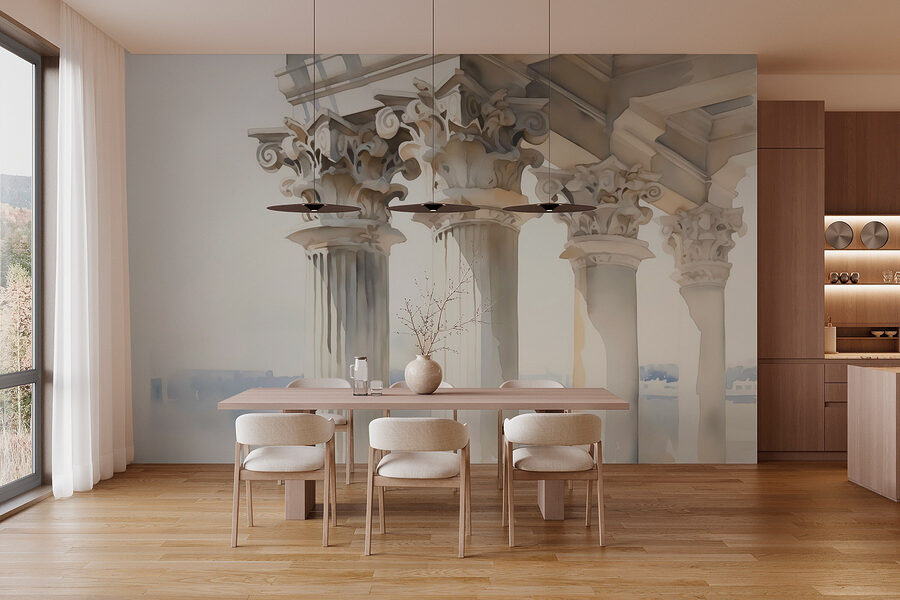Przekształć dowolną przestrzeń w spokojną ucieczkę dzięki tej urzekającej akwareli przedstawiającej wielki budynek otoczony delikatnie kołyszącymi się kolumnami. To tak, jakbyś powitał kawałek miękkiej, marzycielskiej architektury bezpośrednio na swoich ścianach. Wyobraź sobie, że popijasz kawę lub zwijasz się w kłębek z książką, czując się jak zagubiony w spokojnym miejskim krajobrazie. Stonowane odcienie zachęcają do relaksu i kreatywności – idealne na te popołudnia, kiedy “potrzebuję chwili”. To pomysłowy sposób na wyrażenie siebie bez zbytniego zamieszania. Kto by pomyślał, że dodawanie stylu może być tak magiczne?