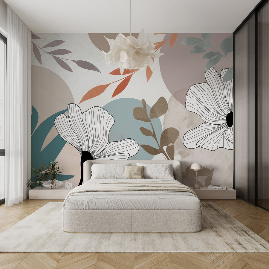Odmień swoją przestrzeń dzięki tej oszałamiającej fototapecie ściennej z delikatnymi białymi kwiatami, chrupiącymi brązowymi liśćmi i zabawnymi niebieskimi kółkami. To jak przeniesienie kawałka natury do wnętrza bez całego dramatu związanego z konewką. Wyobraź sobie, że budzisz się przy tym żywym wzorze, w którym delikatne akwarele tańczą razem, tworząc uspokajającą atmosferę – idealną do popijania porannej kawy lub zakradania się na popołudniową drzemkę. Fototapeta ma świeży, artystyczny charakter, który może sprawić, że każdy pokój poczuje się jak przytulna galeria. Dodanie tej fototapety to szybki sposób na tchnięcie życia w nudną ścianę i wywołanie poważnej radości – kto by tego nie chciał?