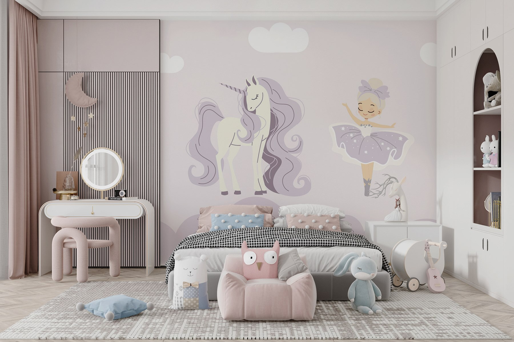 Przekształć dowolną przestrzeń w kapryśną krainę czarów dzięki fototapecie ściennej “Jednorożec i baletnica”. Wyobraź to sobie: uroczy jednorożec i pełna wdzięku baletnica tańczący na tle sennego pastelowego nieba. To tak, jakby mieć kawałek magii na swojej ścianie! Dzieci (i bądźmy szczerzy, dorośli też) mogą zatracić się w swojej wyobraźni, marząc o wirowaniu i błyszczeniu. Idealna do pokoju zabaw lub sypialni, ta fototapeta może sprawić, że nawet najnudniejsza ściana poczuje się jak w bajce. Wyobraź sobie uśmiechy, gdy wpadną przyjaciele – każdy uwielbia dobrą historię o jednorożcu, prawda? Jest miękka, urocza i bardzo inspirująca – najlepsze tło dla przygód i marzeń!