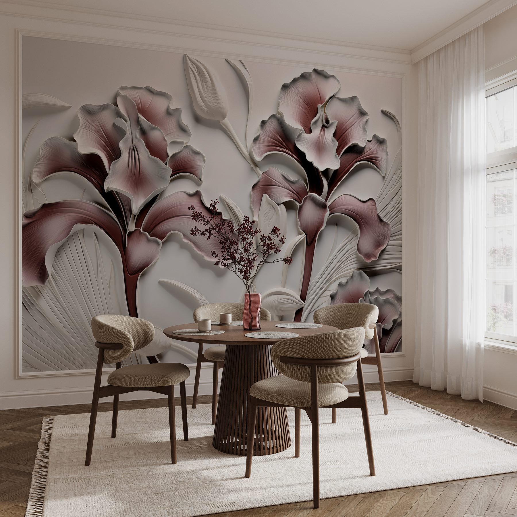 Przekształć swoją przestrzeń w kwitnącą oazę dzięki tej oszałamiającej fototapecie ściennej z delikatnymi kwiatami i liśćmi. Wyobraź sobie, że wchodzisz do pokoju, który żyje kolorami i teksturą, gdzie każde spojrzenie jest jak spacer po spokojnym ogrodzie. Delikatne odcienie i skomplikowane wzory wprowadzają odrobinę natury do wnętrza, natychmiast podnosząc nastrój. To jak powieszenie nowoczesnego dzieła sztuki, które szepcze: “Zrelaksuj się, jesteś w domu”. Idealny do przytulnego kącika lub nawet tętniącej życiem jadalni, zachęca do rozmowy. Chwyć więc filiżankę herbaty, rozsiądź się wygodnie w fotelu i pozwól kwiatom działać!