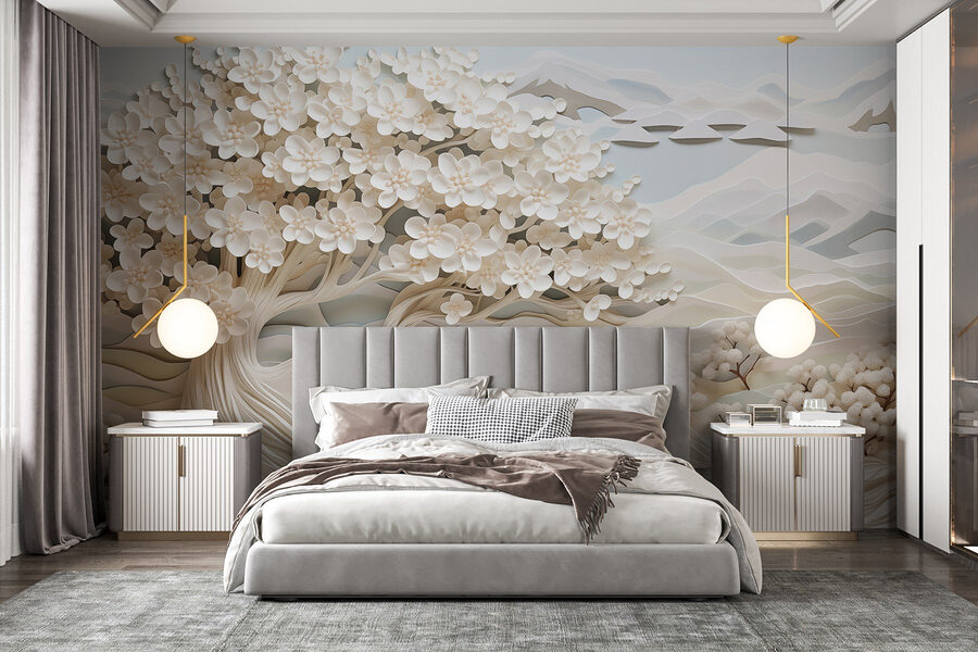 Zmień dowolną przestrzeń w spokojną przystań dzięki fototapecie „Białe drzewo z białymi kwiatami i rzeką”. Wyobraź sobie, że wkraczasz do świata, w którym szepczące płatki kwiatów i delikatny szum wody są na wyciągnięcie ręki. Ta fototapeta, dzięki delikatnym odcieniom i misternym detalom, zachęca do marzeń i spokojnych chwil. To jak wprowadzenie kawałka natury do wnętrza — idealne rozwiązanie dla każdego, kto kocha odrobinę spokoju. Niezależnie od tego, czy znajduje się w przytulnym kąciku do czytania, czy w tętniącym życiem salonie, ten mural z pewnością stanie się tematem rozmów i codziennym przypomnieniem o pięknie. Poza tym, kto nie chciałby udawać, że mieszka nad spokojną rzeką?