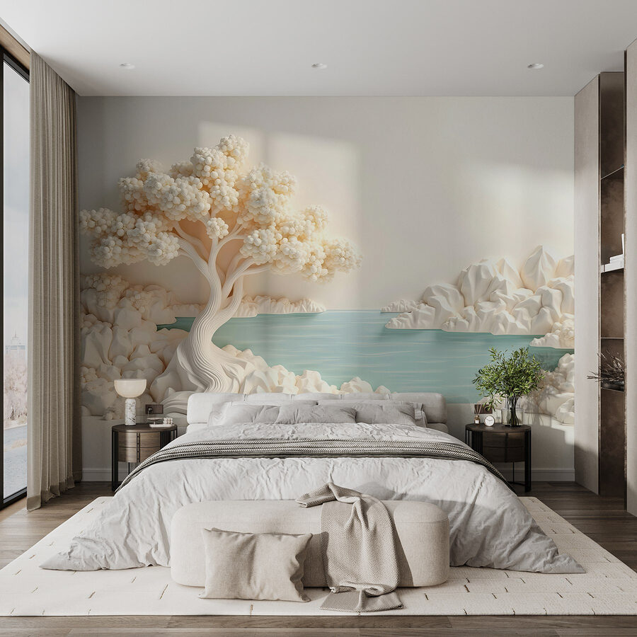 Odmień swoją przestrzeń dzięki zachwycającej fototapecie ściennej “Białe drzewo i woda”. Ta oszałamiająca fototapeta wprowadza spokojną atmosferę bezpośrednio do domu, przedstawiając pięknie wykonane drzewo, które niemal wydaje się szeptać tajemnice natury. Wyobraź sobie, że popijasz poranną kawę, wpatrując się w spokojną wodę – to jak mini ucieczka od zgiełku.